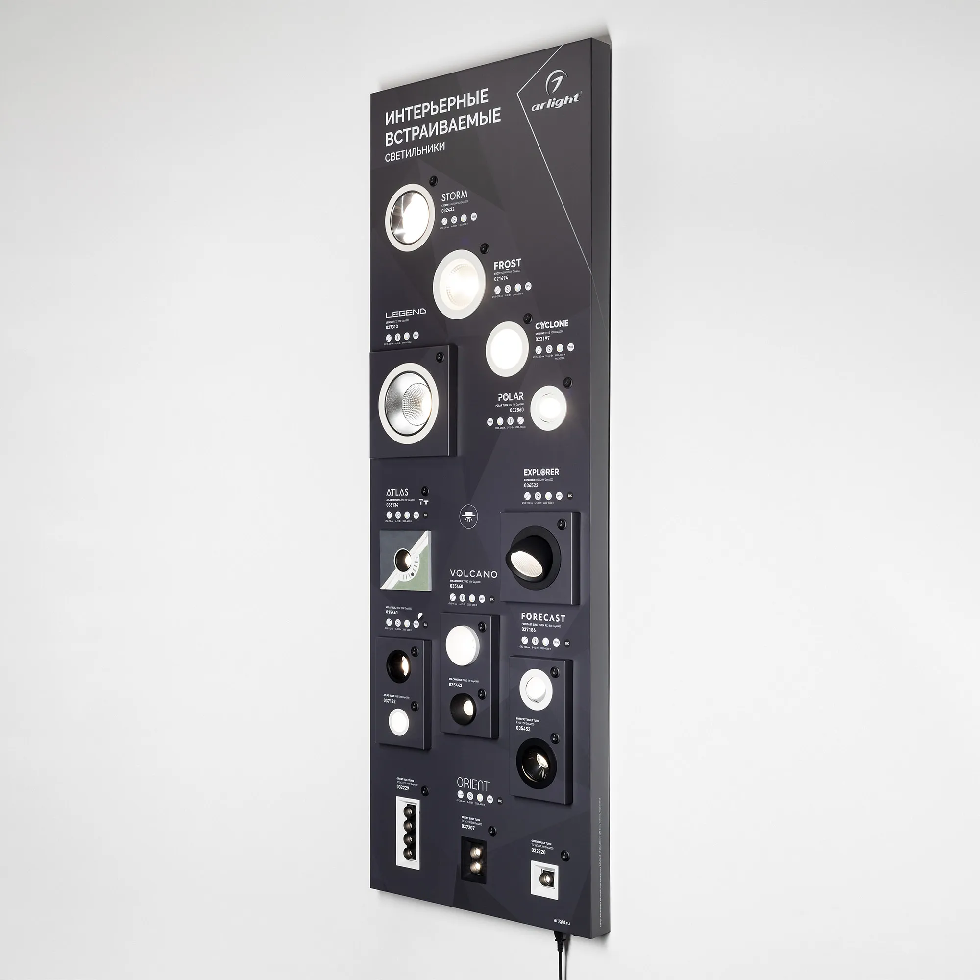 Наши специалисты знают все о продукции Arlight и с радостью помогут Вам выбрать комплектующие к товару "Стенд Cветильники Даунлайты встраиваемые ARLIGHT-1760x600mm (DB 3мм, пленка, подсветка) (Arlight, -)", или другие товары из раздела "Светодиодные светильники".