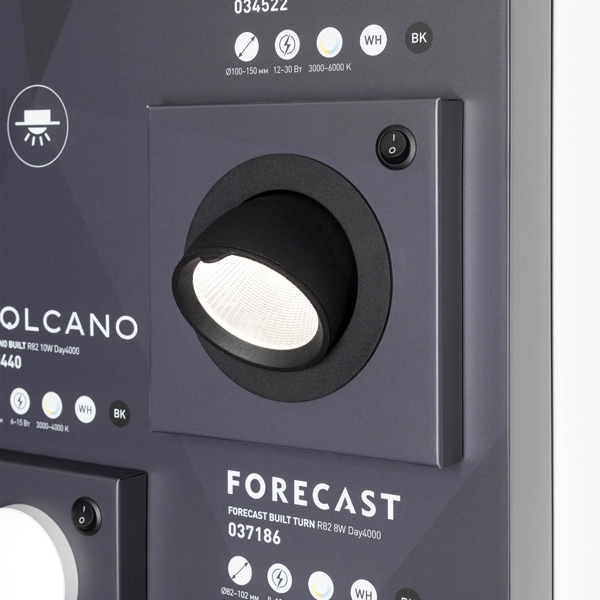 Стенд светильники даунлайты встраиваемые, серии STORM, FROST, LEGEND, CYCLONE, POLAR, EXPLORER, ATLAS-TRIMLESS, ATLAS, VOLCANO, ORIENT-BUILT,