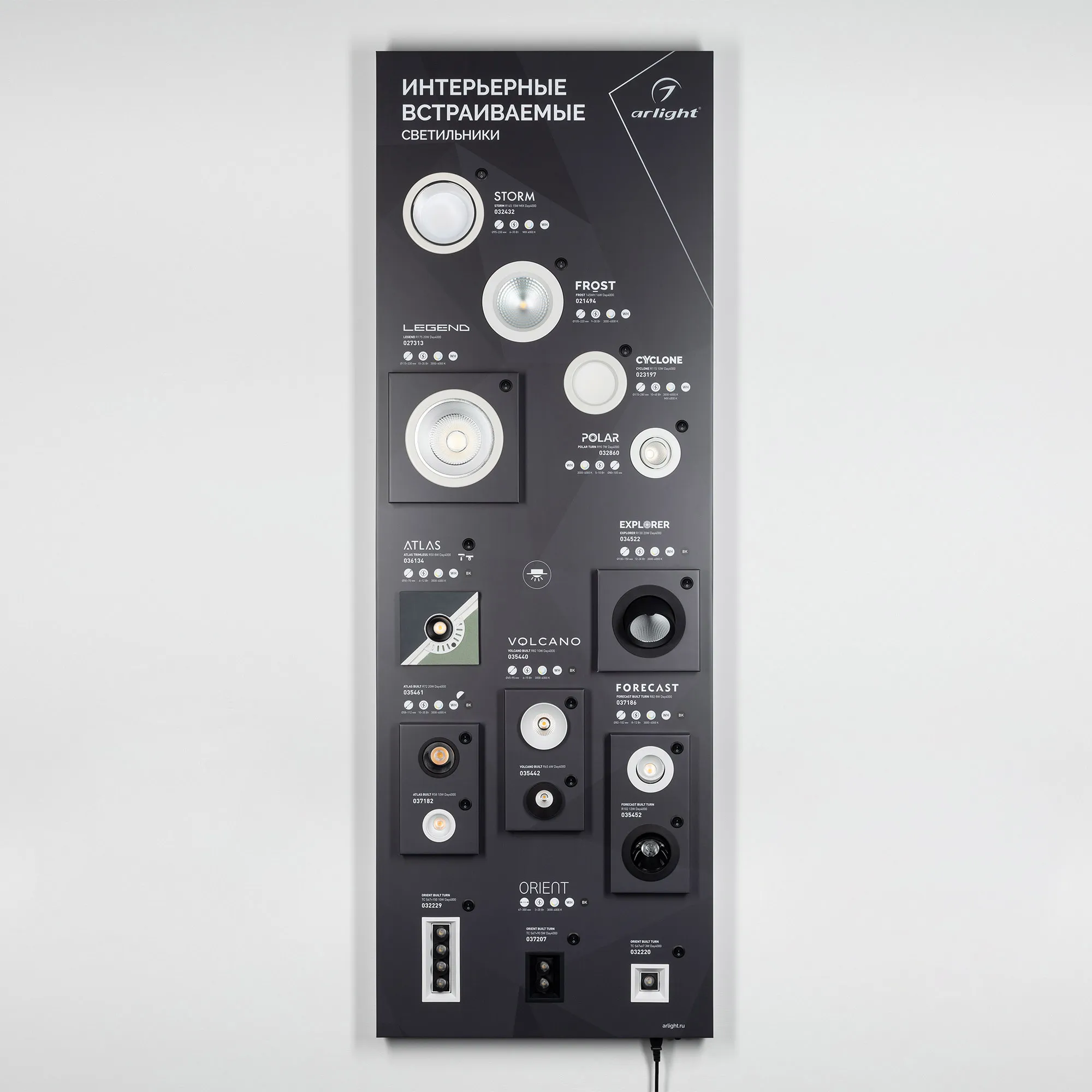 Стенд Cветильники Даунлайты встраиваемые ARLIGHT-1760x600mm (DB 3мм, пленка, подсветка) (Arlight, -)