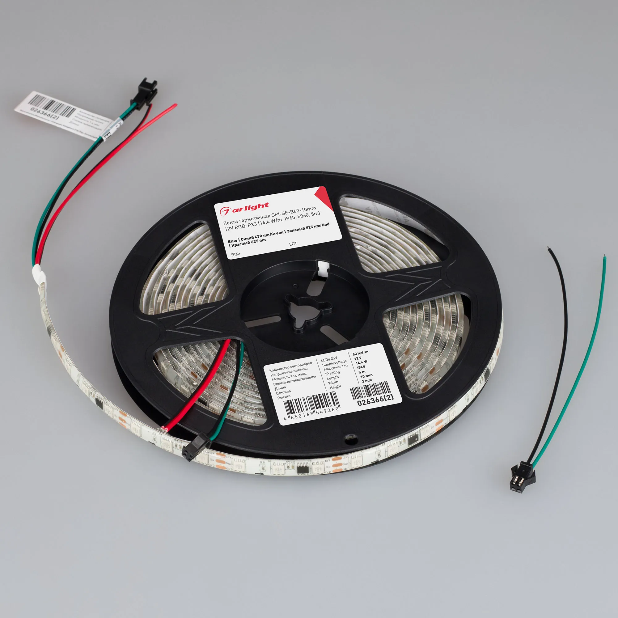 В магазине Мельковский Свет Вы можете купить "Лента светодиодная герметичная SPI-SE-B60-10mm 12V RGB-PX3 (14.4 W/m, IP65, 5060, 5m) (Arlight, бегущий огонь)"