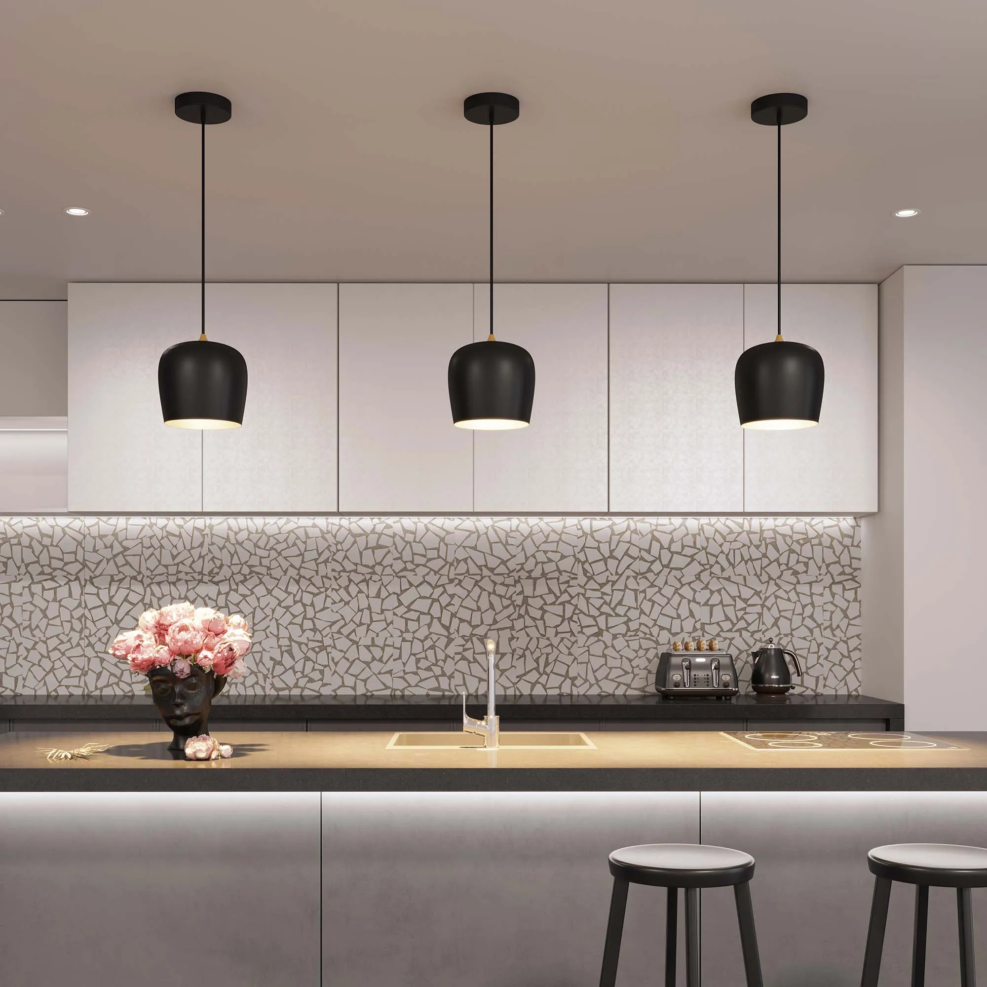 Подвесной светильник. Мощность 15 Вт, св. поток 730 лм, 50 лм/Вт, теплый 3000 K, CRI>90, угол 65°, напряжение питания 230 В. Белый круглый корпус из алюминия, степень защиты IP20. Размер: диаметр 250 мм, высота 250 мм, размер чаши: диаметр 160 мм, высота 35 мм. Монтаж подвесной, длина подвеса 1500мм. Драйвер 24-40 В, 350 мА, пульсация <5%.