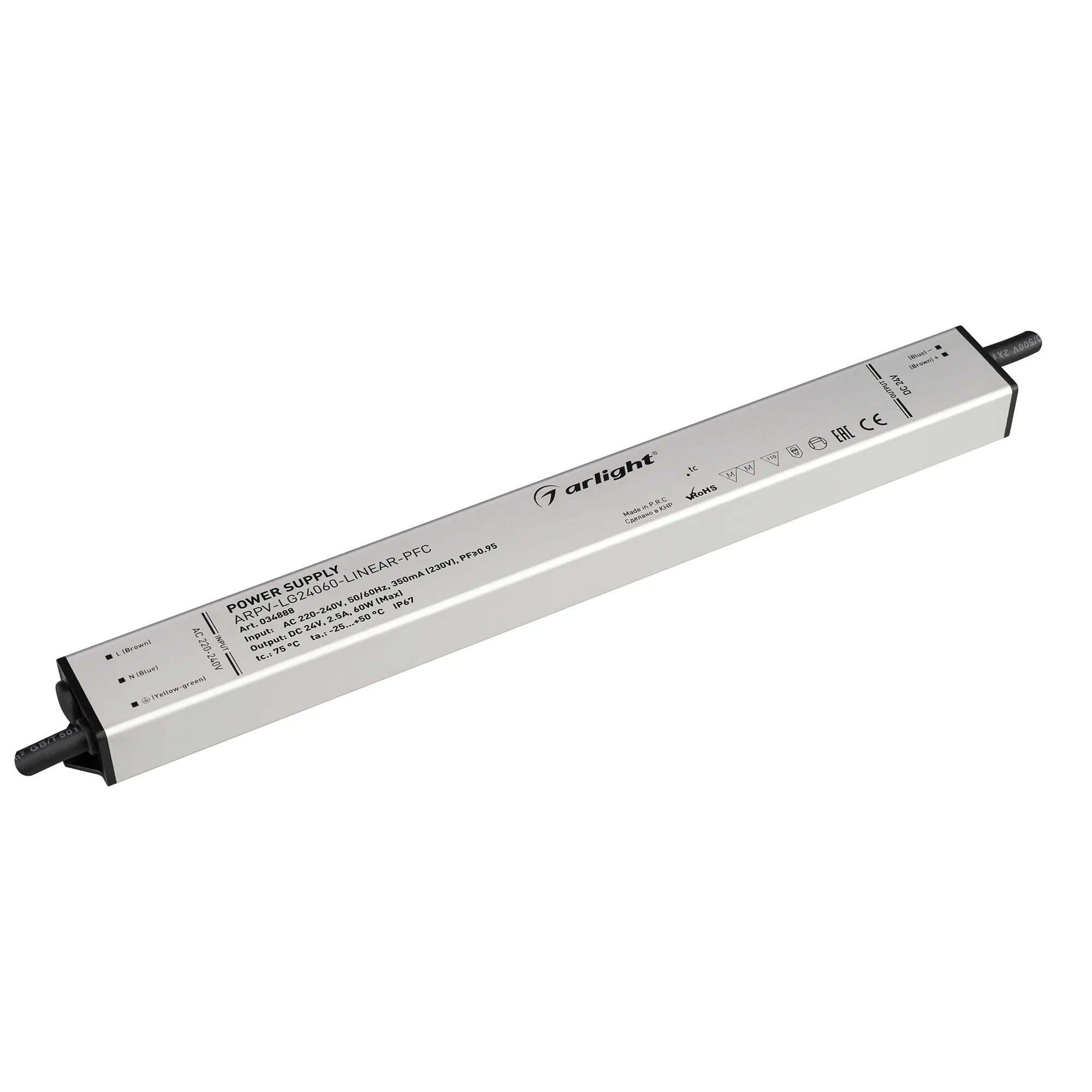 Наши специалисты знают все о продукции Arlight и с радостью помогут Вам выбрать комплектующие к товару "Блок питания ARPV-LG24060-LINEAR-PFC (24V, 2.5A, 60W) (Arlight, IP67 Металл, 5 лет)", или другие товары из раздела "герметичные с PFC [IP67, металл]".