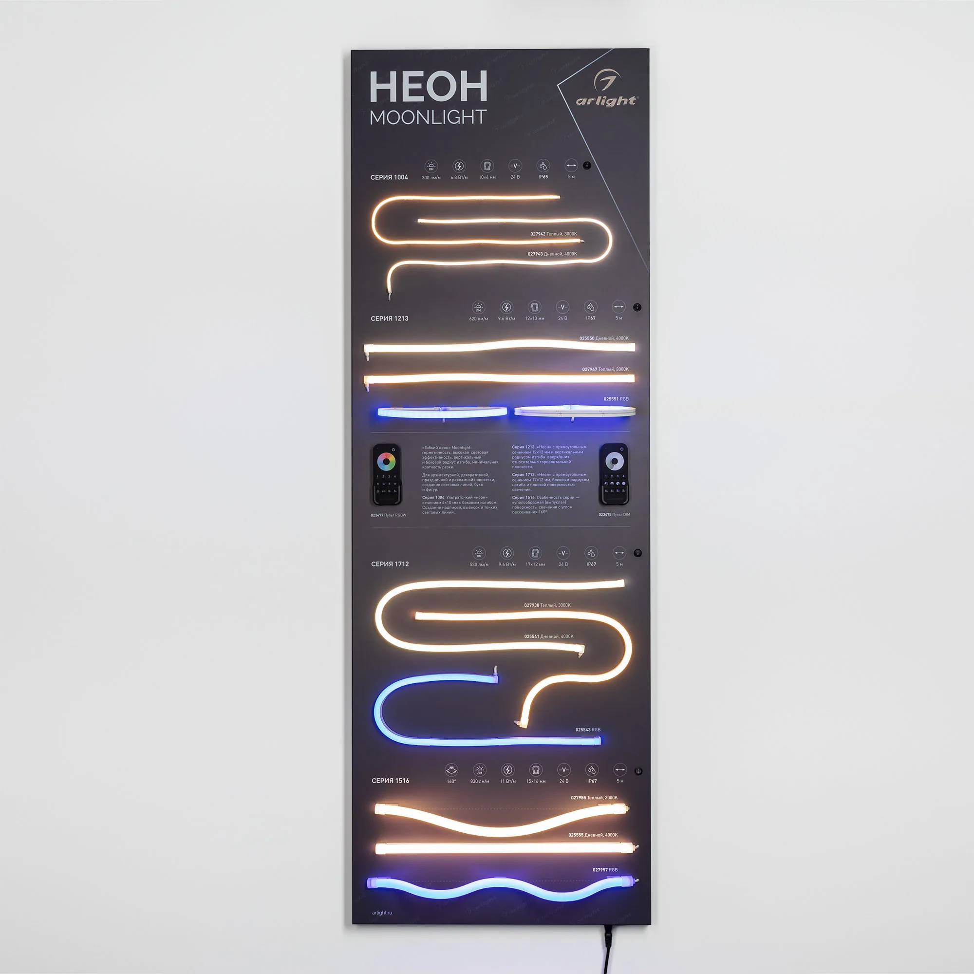 Наши специалисты знают все о продукции Arlight и с радостью помогут Вам выбрать комплектующие к товару "Стенд Гибкий Неон MOONLIGHT-1760x600mm (Arlight, -)", или другие товары из раздела "Светодиодный декор".