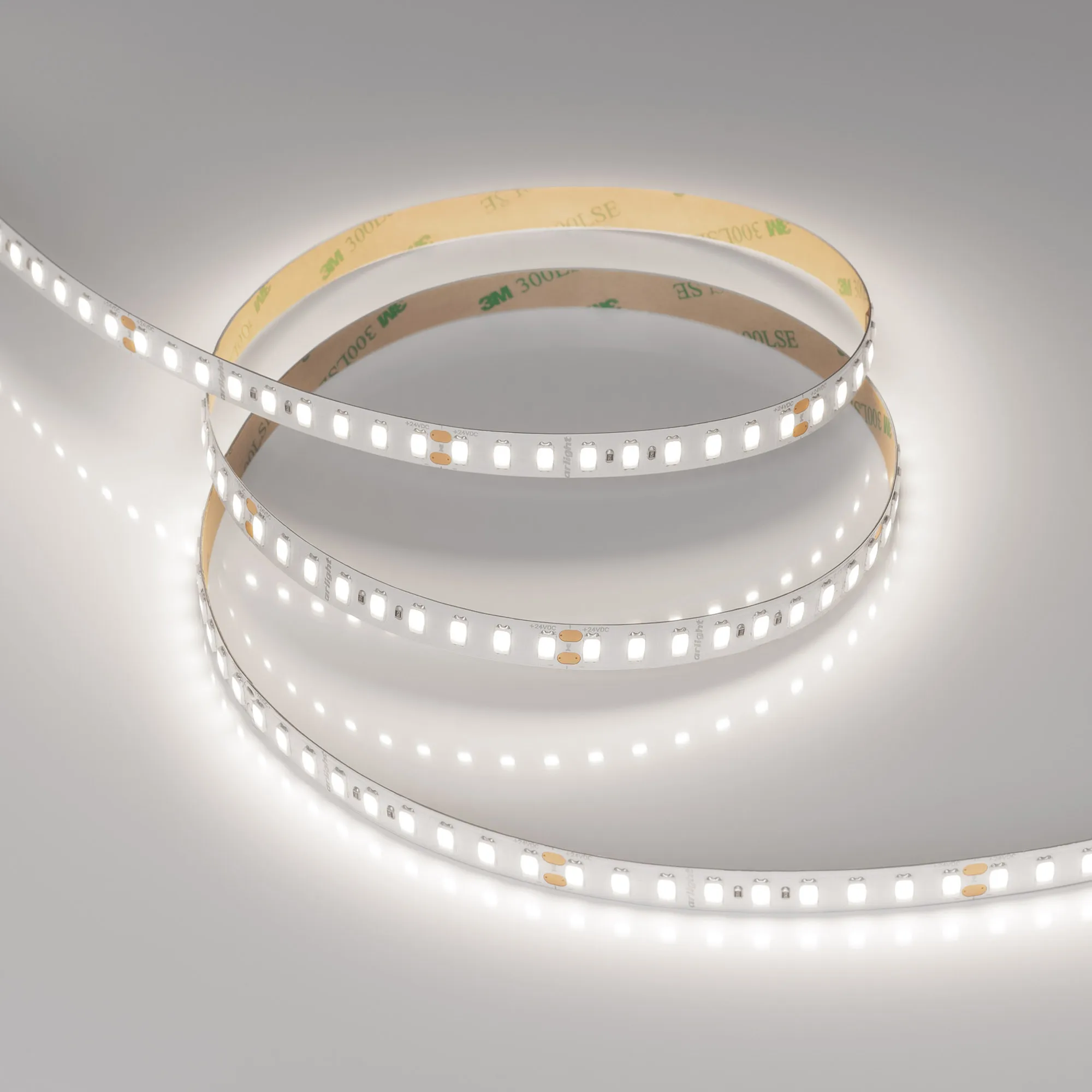 Светодиодная высокоэффективная лента ULTRA серии C126. Светодиоды SMD 5630, 126 шт/м, белая плата шириной 10 мм, скотч 3M. Цвет ДНЕВНОЙ 5000K, высокая световая эффективность 200 лм/Вт, индекс цветопередачи CRI>80, угол 120°. Питание 24 В, мощность 14.4 Вт/м (72 Вт на 5 м). Размеры 5000x10x1.4 мм. Мин. отрезок 71.4 мм, 9 светодиодов. Цена за 1 м. Рекомендуется установка на профиль.