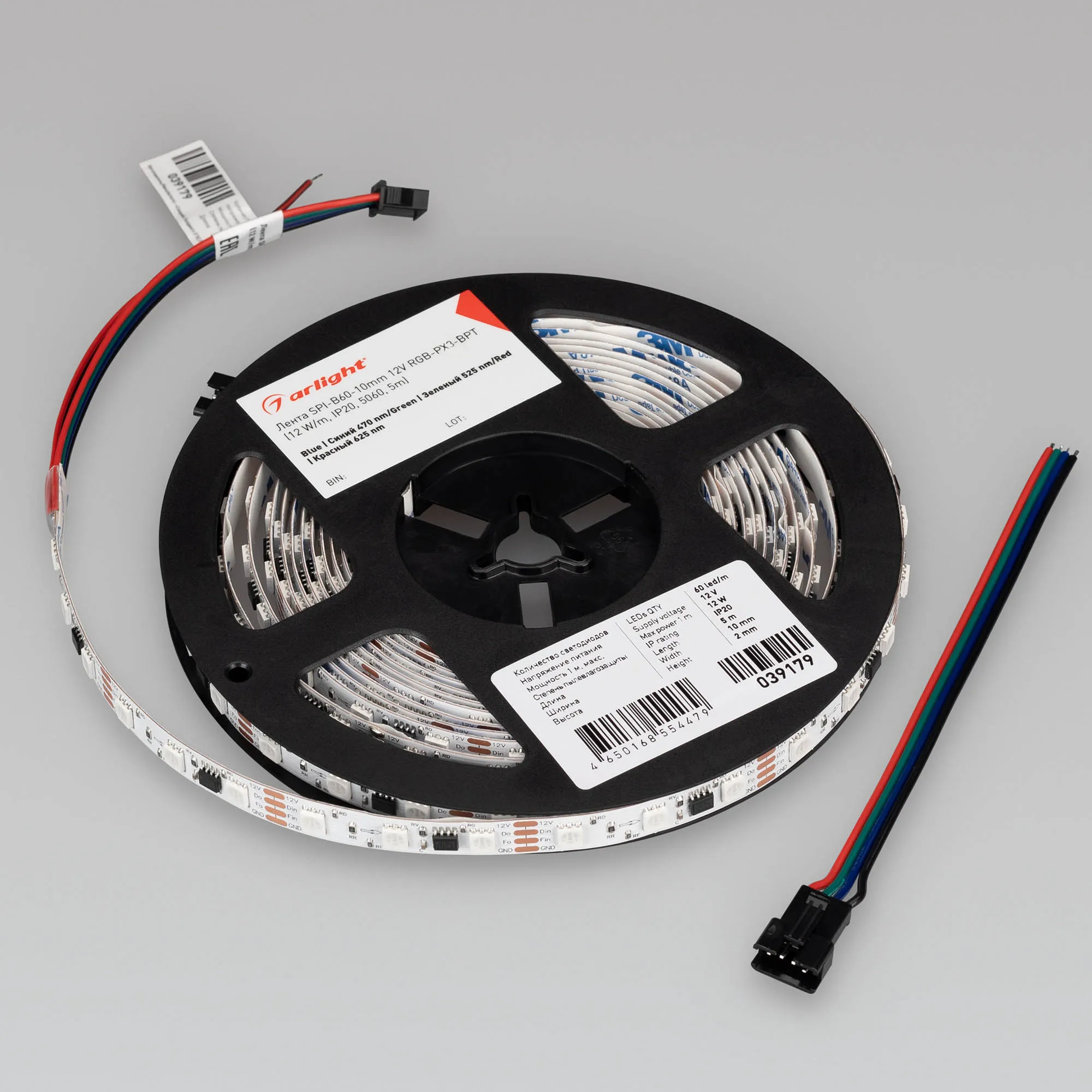 В магазине Мельковский Свет Вы можете купить "Лента светодиодная SPI-B60-10mm 12V RGB-PX3-BPT (12 W/m, IP20, 5060, 5m) (Arlight, бегущий огонь)"