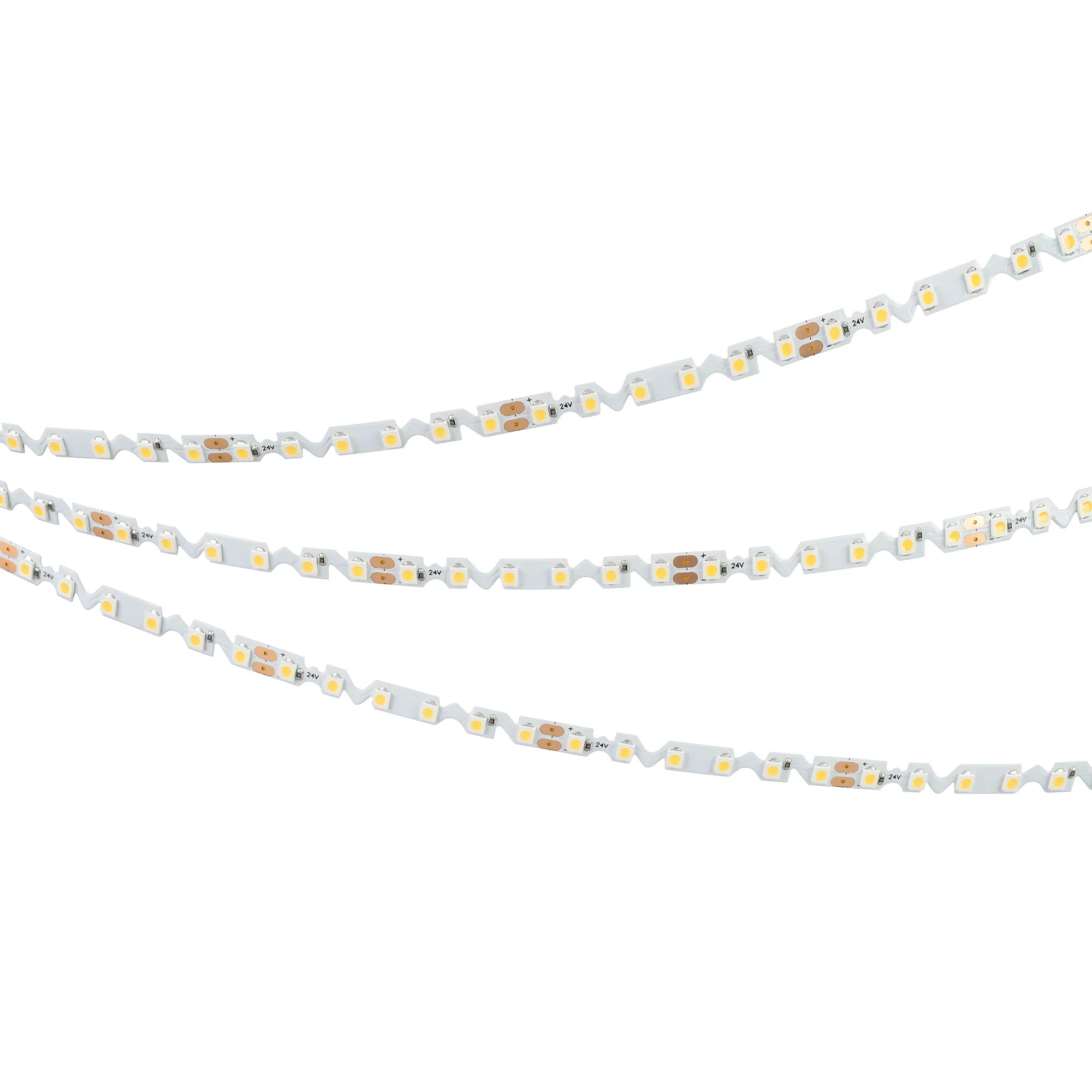 Гибкая светодиодная лента RZ серии A120 с фигурной платой в форме волны, легко изгибается на плоскости. Светодиоды SMD 2835, 120 шт/м, белая плата шириной 6 мм, скотч 3М. Цвет ХОЛОДНЫЙ 8000K, индекс цветопередачи CRI>90, угол 120°. Питание 24 В, мощность 9.6 Вт/м (48 Вт на 5 м). Размеры 5000х6х1.3 мм. Мин. отрезок 50 мм, 6 светодиодов. Цена за 1 м. Обязательна установка на профиль.