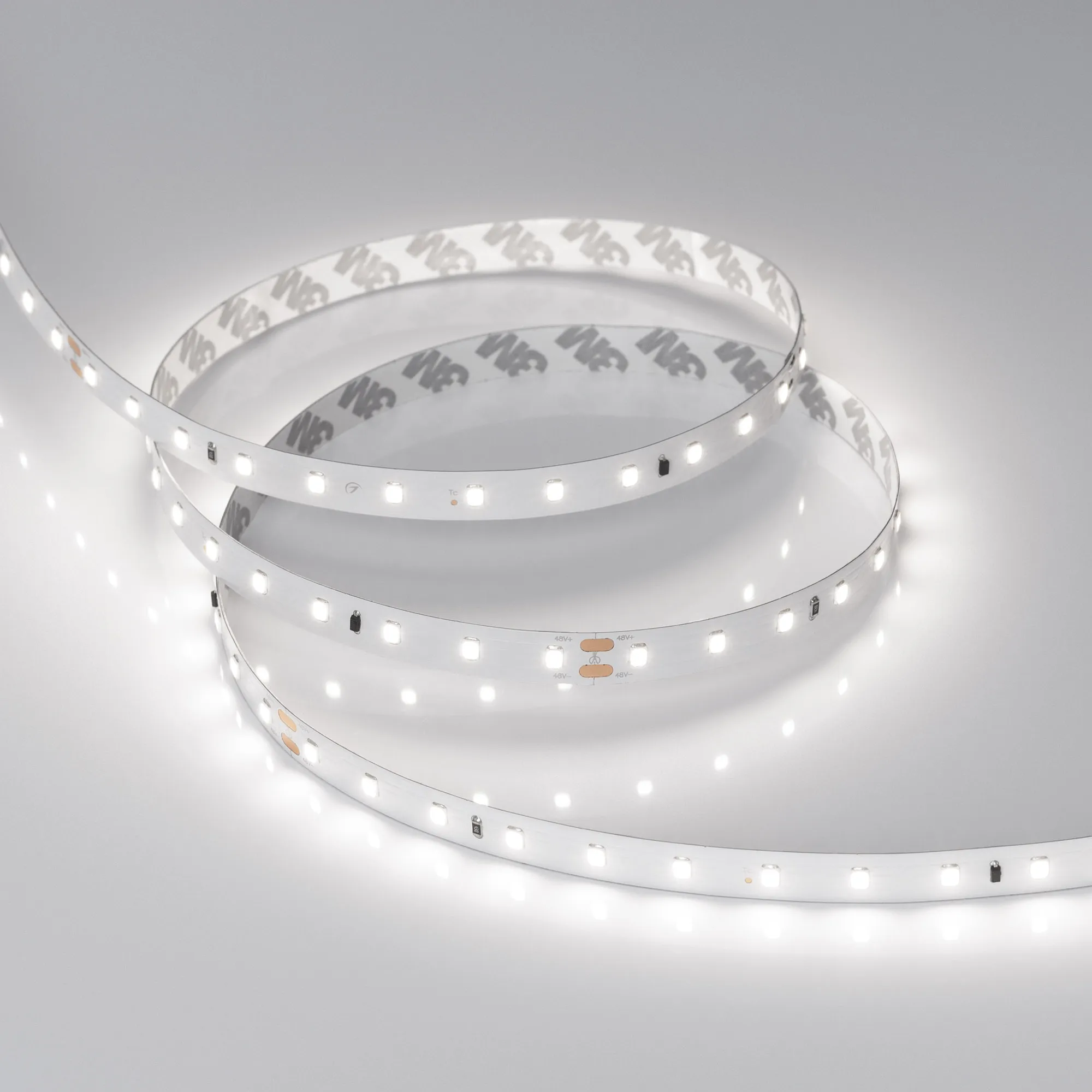 Стабилизированная светодиодная лента IC серии A72 с длиной подключения 60 м. Светодиоды SMD 2835, 72 шт/м, белая плата шириной 10 мм, скотч 3M. Цвет БЕЛЫЙ 6000K, индекс цветопередачи CRI>85, угол 120°. Питание 48 В, мощность 3.8 Вт/м (228 Вт на 60 м). Размеры 60000х10х1.6 мм. Мин. отрезок 166.67 мм, 12 светодиодов. Цена за 1 м. Катушка 60 м.