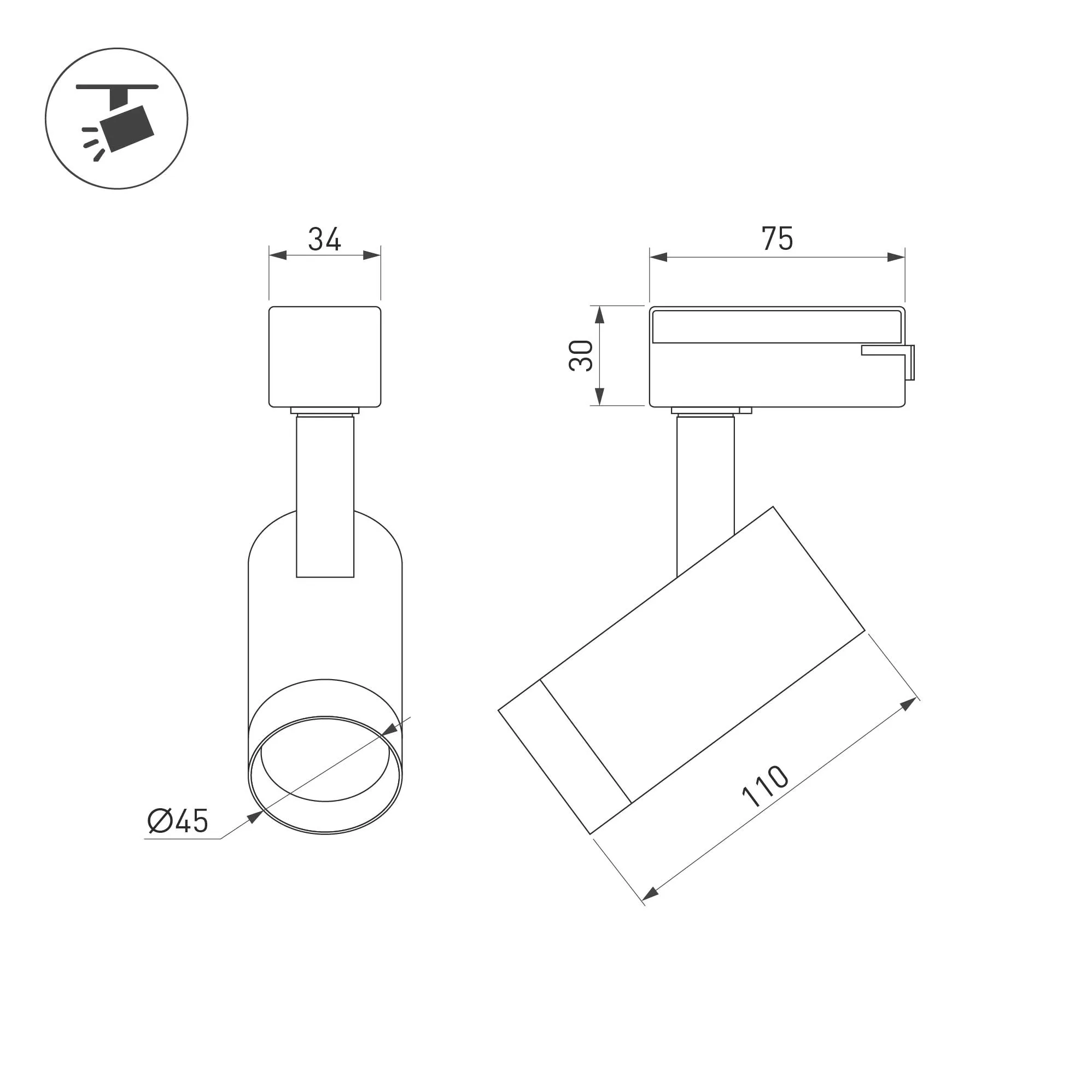 Светильник для треков/шин 2 провода. Мощность 7 Вт, св. поток 540 лм, 77 лм/Вт, дневной 4000 K, CRI>94, угол 24°, напряжение питания 230 В. Чёрный круглый корпус из алюминия, материал линзы PMMA , степень защиты IP20. Размер: диаметр 45 мм, высота 165 мм. Монтаж на трек 1-фазный. Драйвер встроенный 8.5-40 В, 150 мА., пульсация <2%.