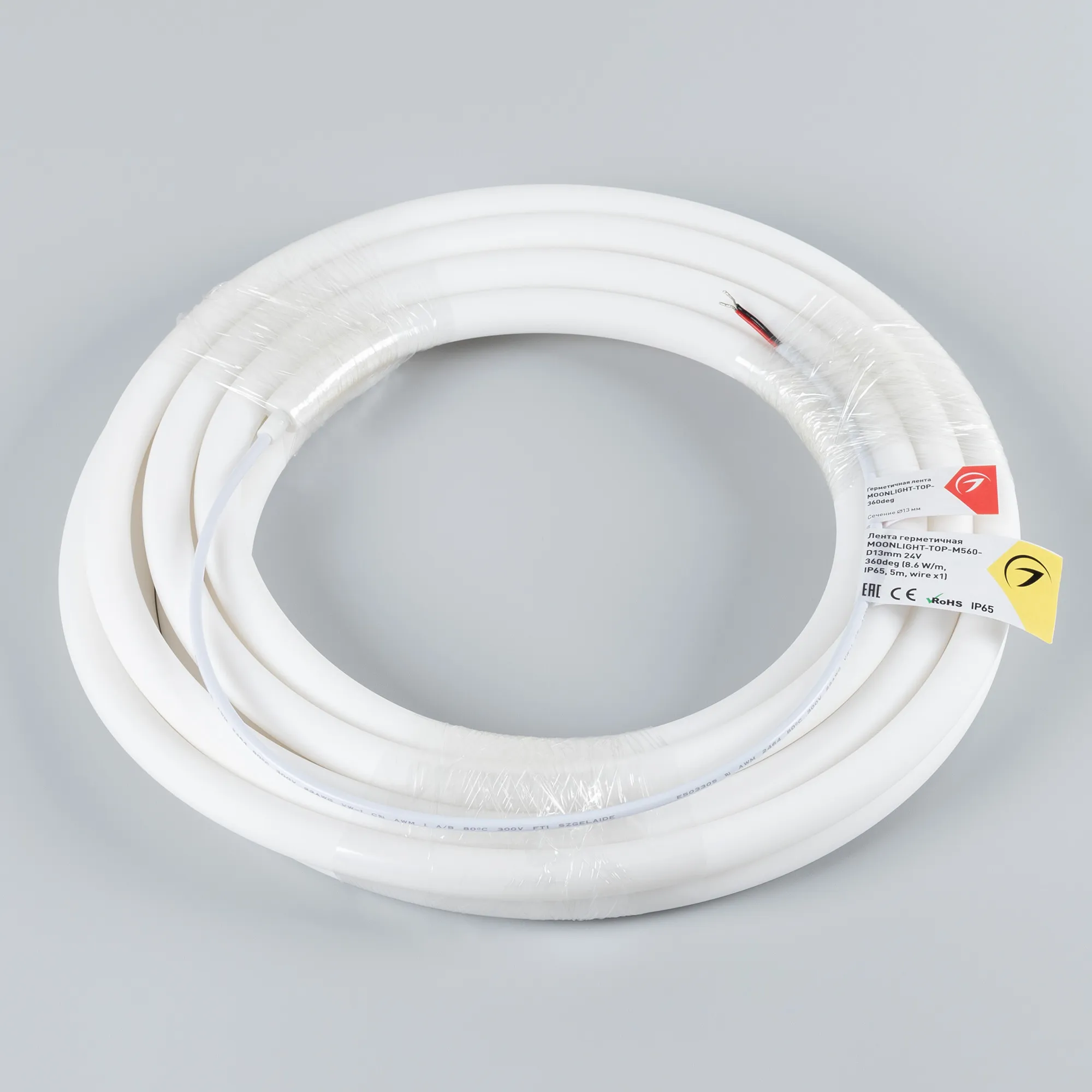 Лента светодиодная герметичная MOONLIGHT-TOP-M560-D13mm 24V Day4000 360deg (8.6 W/m, IP65, 5m, wire x1) (Arlight, Вывод прямой, 3 года)