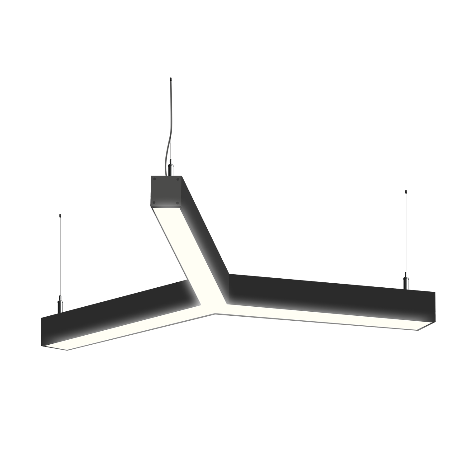 Cветодиодный фигурный светильник MS-TRINITY Y-образный размер профиля 50x50мм длиной 3х750мм мощностью 40W. Светильник собирается из алюминиевого основния с матовым рассеивателем, который дает равномерную засветку по всей площади.