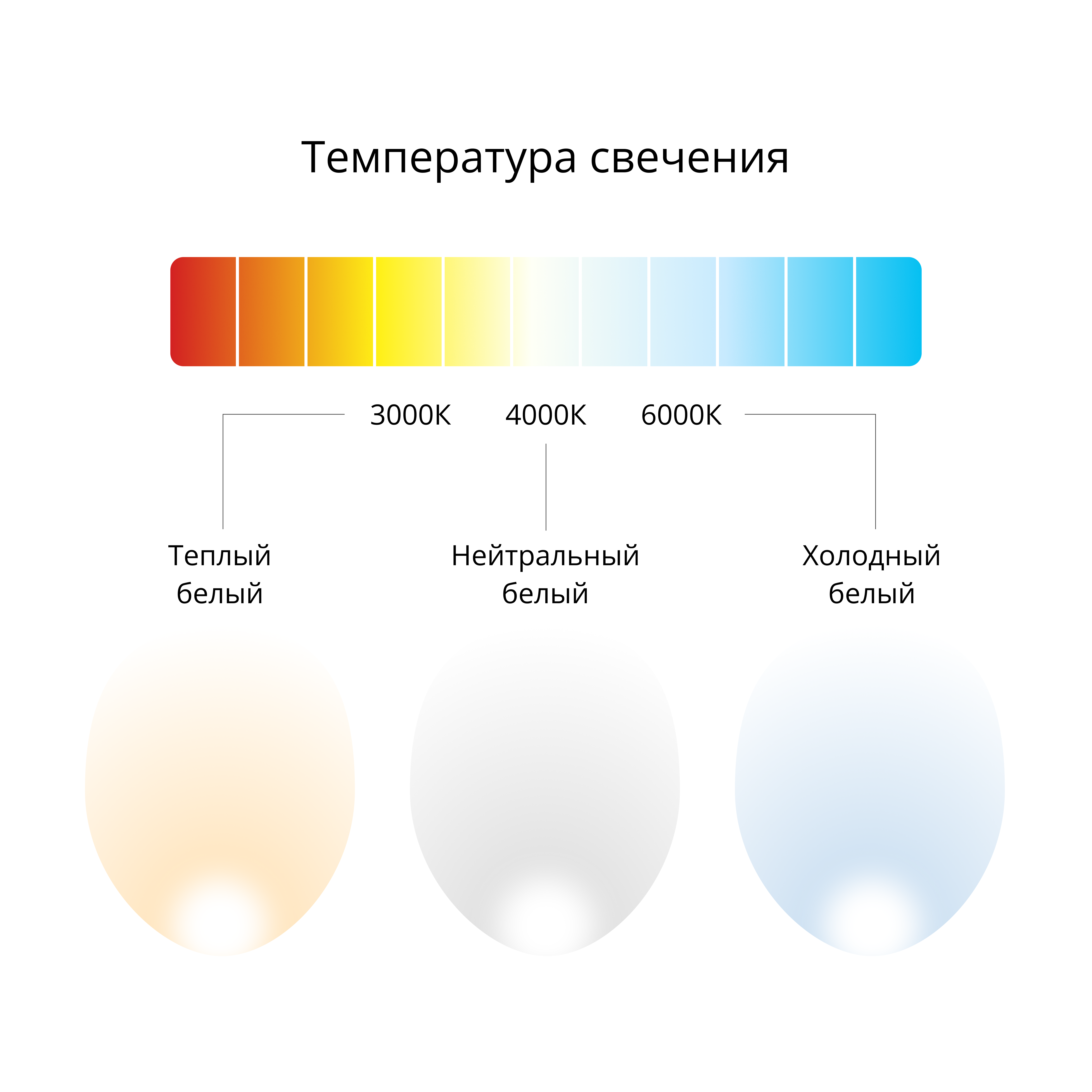 - Цветовая температура от 3000К до 6000К. Стандартное исполнение - 4000К.