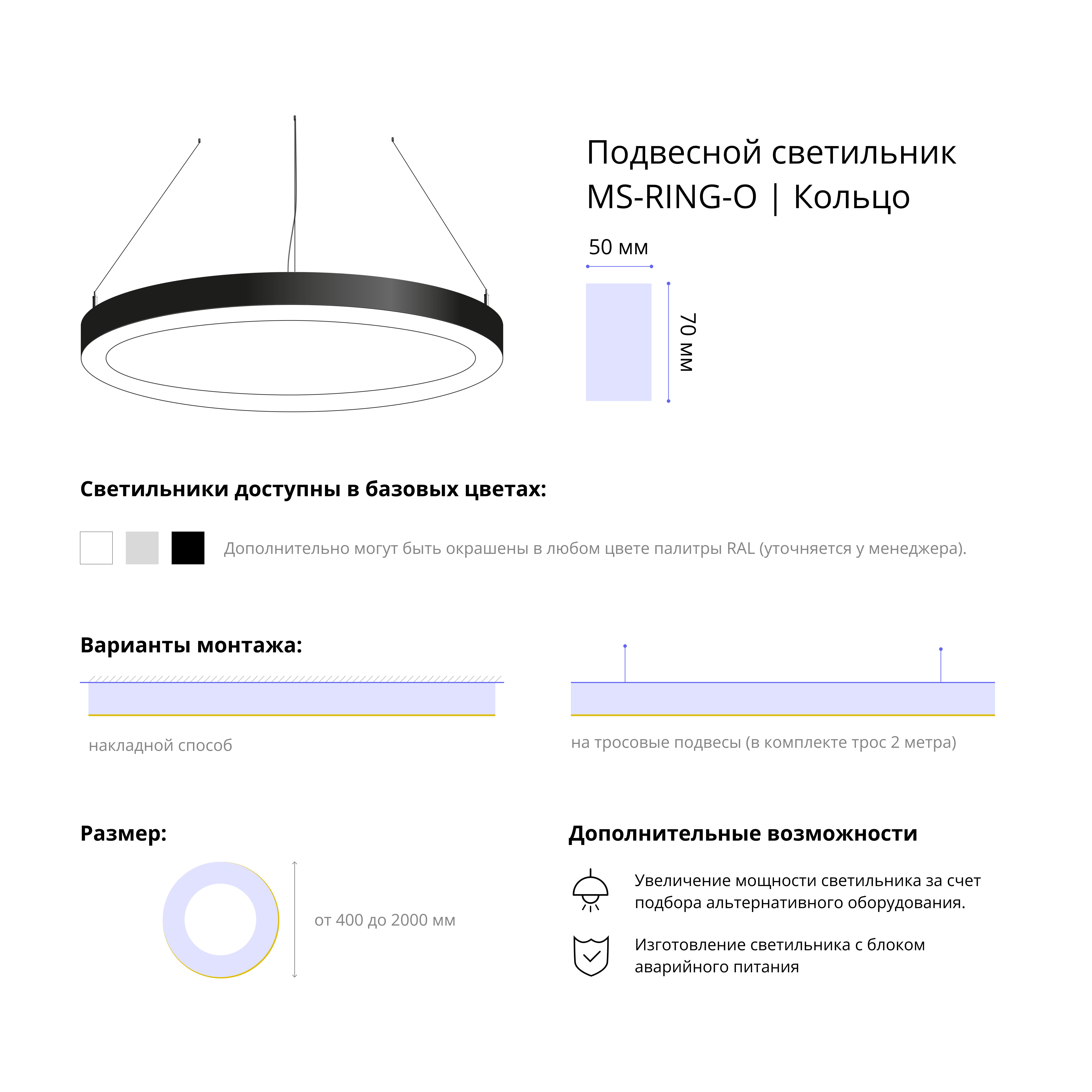 Светодиодный фигурный светильник MS-RING-O Кольцо 700mm 35W 3000/4000/6000K
