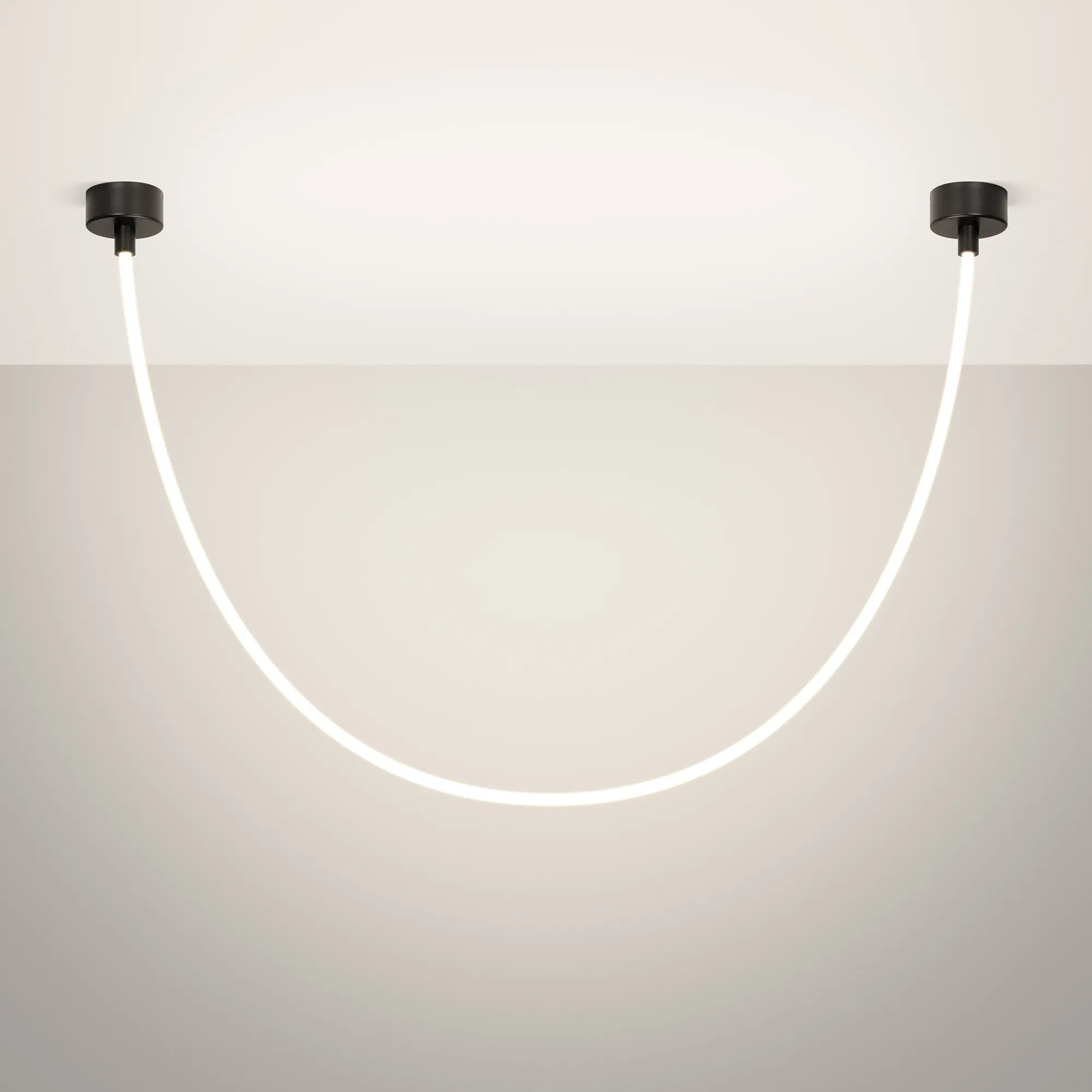 Подвесной светильник. Мощность 36 Вт, св. поток 2300 лм, 63 лм/Вт, дневной 4000 K, CRI>90, угол 360°, напряжение питания 230 В. Черный круглый корпус из стали, силиконовая герметичная лента, степень защиты IP20. Размер: общая высота чаши 85 мм, высота чаши без вывода под неон 50 мм, диаметр вывода под неон 35 мм, диаметр чаши 130 мм, диаметр силиконовой герметичной ленты 18 мм, длина силиконовой герметичной ленты 2500 мм. Монтаж встраиваемый, глубина установки 55 мм, диаметр установочного отверстия 65 мм. Блок питания 24 В, 1880 А, пульсация <5%.