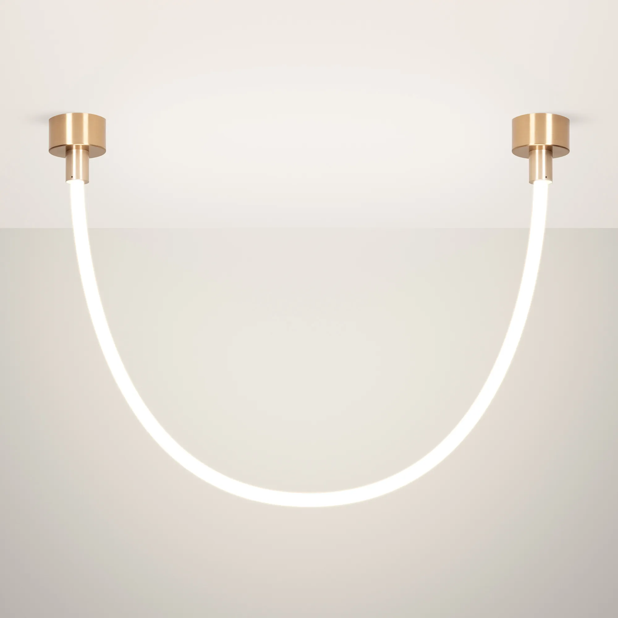 Подвесной светильник. Мощность 18 Вт, св. поток 1160 лм, 64 лм/Вт, дневной 4000 K, CRI>90, угол 360°, напряжение питания 230 В. Золотой круглый корпус из стали, силиконовая герметичная лента, степень защиты IP20. Размер: общая высота чаши 85 мм, высота чаши без вывода под неон 50 мм, диаметр вывода под неон 35 мм, диаметр чаши 130 мм, диаметр силиконовой герметичной ленты 18 мм, длина силиконовой герметичной ленты 1200 мм. Монтаж накладной. Блок питания 24 В, 750 мА, пульсация <5%.
