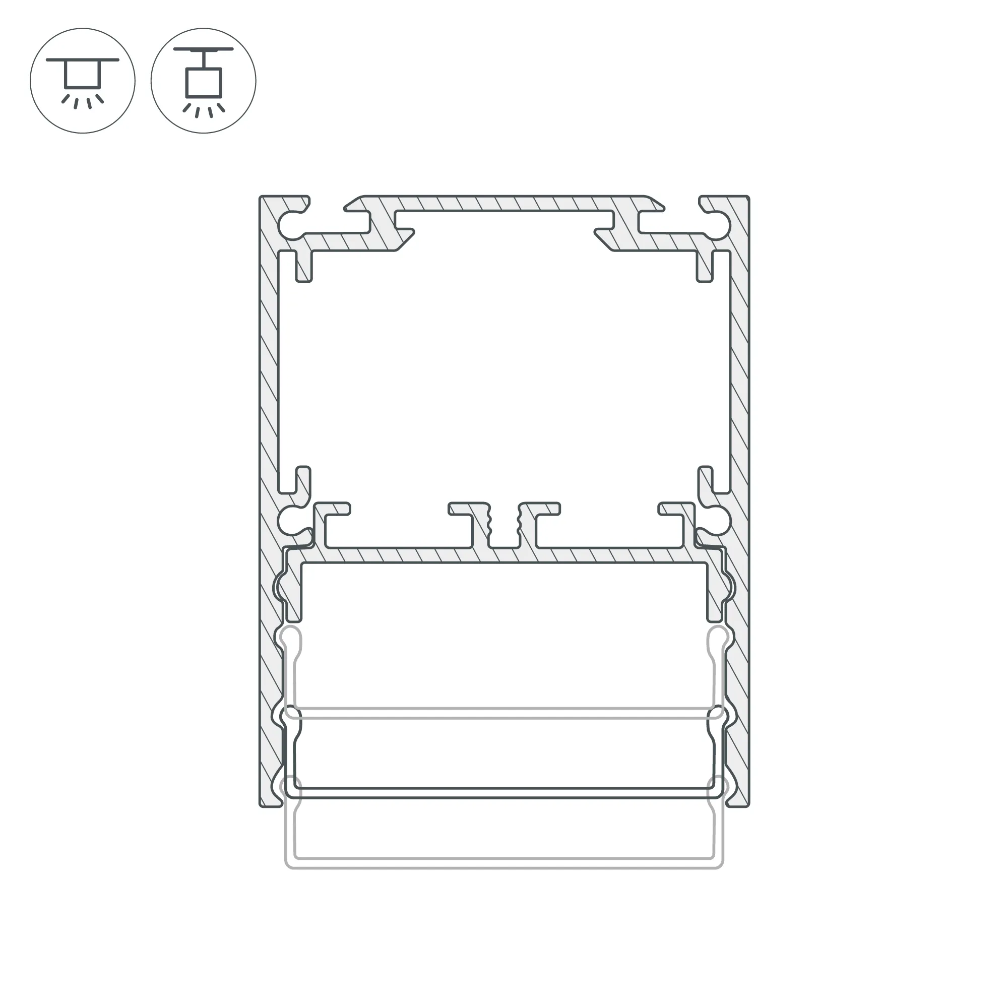 Алюминиевый анодированный профиль со съемной площадкой для светодиодной ленты в комплекте. Габаритные размеры (L×W×H): 2000x40x50,6 мм. Ширина площадки для ленты 33мм. Отсек для БП 31,4х20,5 мм. Возможность установки экрана на разных уровнях (три варианта). Экраны, заглушки и другие аксессуары приобретаются отдельно. Цена за 1 метр.