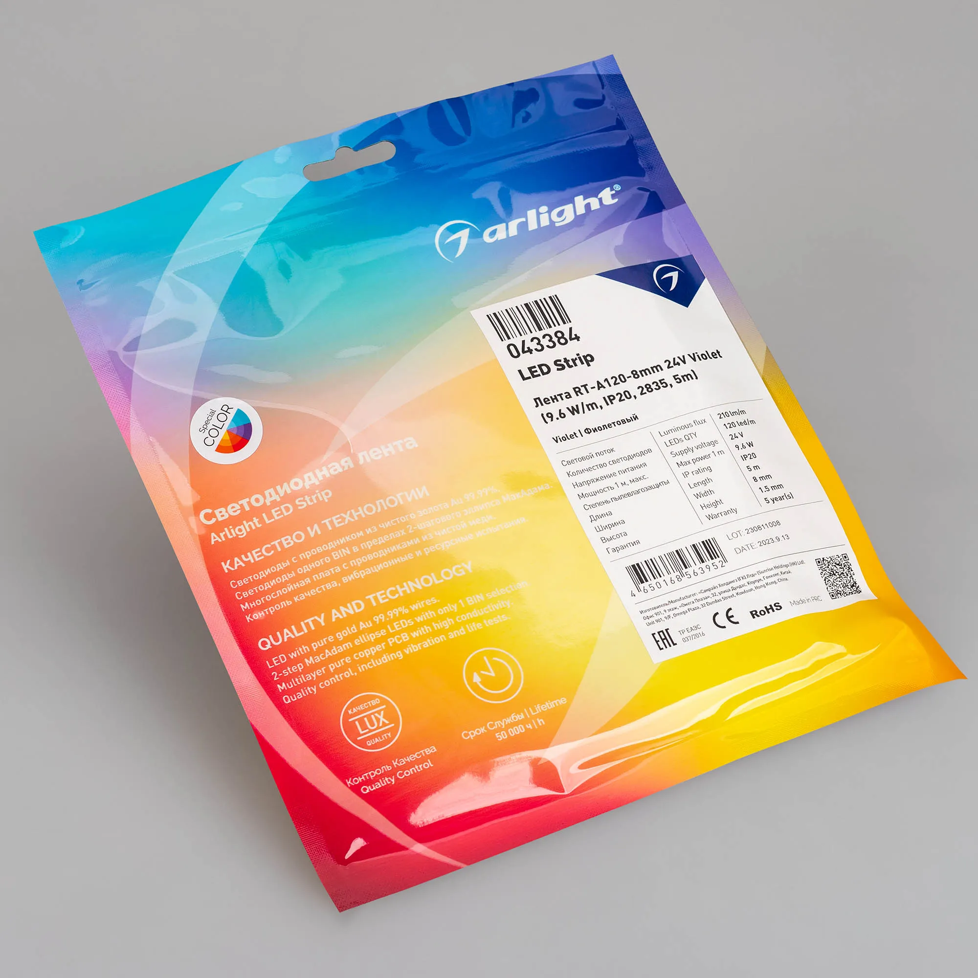 В магазине Arled Market Вы можете купить "Лента светодиодная RT-A120-8mm 24V Violet (9.6 W/m, IP20, 2835, 5m) (Arlight, -)"