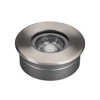 Встраиваемый светодиодный светильник для грунта и пола. Мощность 6Вт, угол освещения 35°, световой поток 400лм, цвет ТЕПЛЫЙ 3000К, CRI(Ra)>80. Круглый влагозащищенный корпус IP67, внешняя рамка из нержавеющей стали AISI 316. Экран закалённое стекло. Питание 24V, 6Вт. Размер Ø110x38мм. Установка в отверстие Ø98x35мм. ВНИМАНИЕ! Светильник не поддерживает регулирование светового потока ШИМ. Комплект установки в грунт/пол в комплекте,