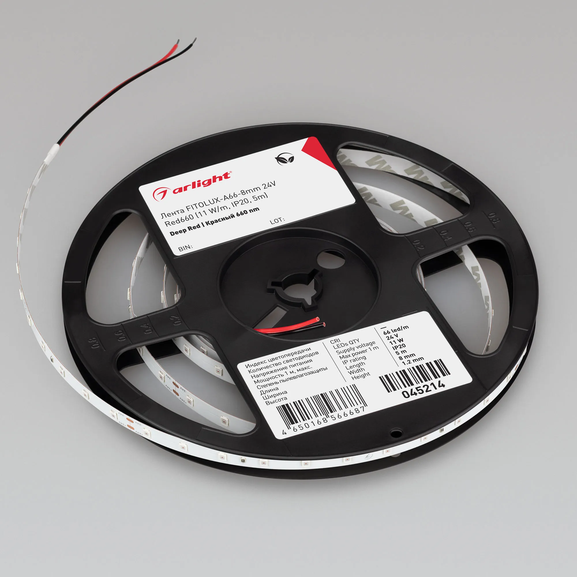 Лента светодиодная FITOLUX-A66-8mm 24V Red660 (11 W/m, IP20, 5m) (Arlight, Открытый)