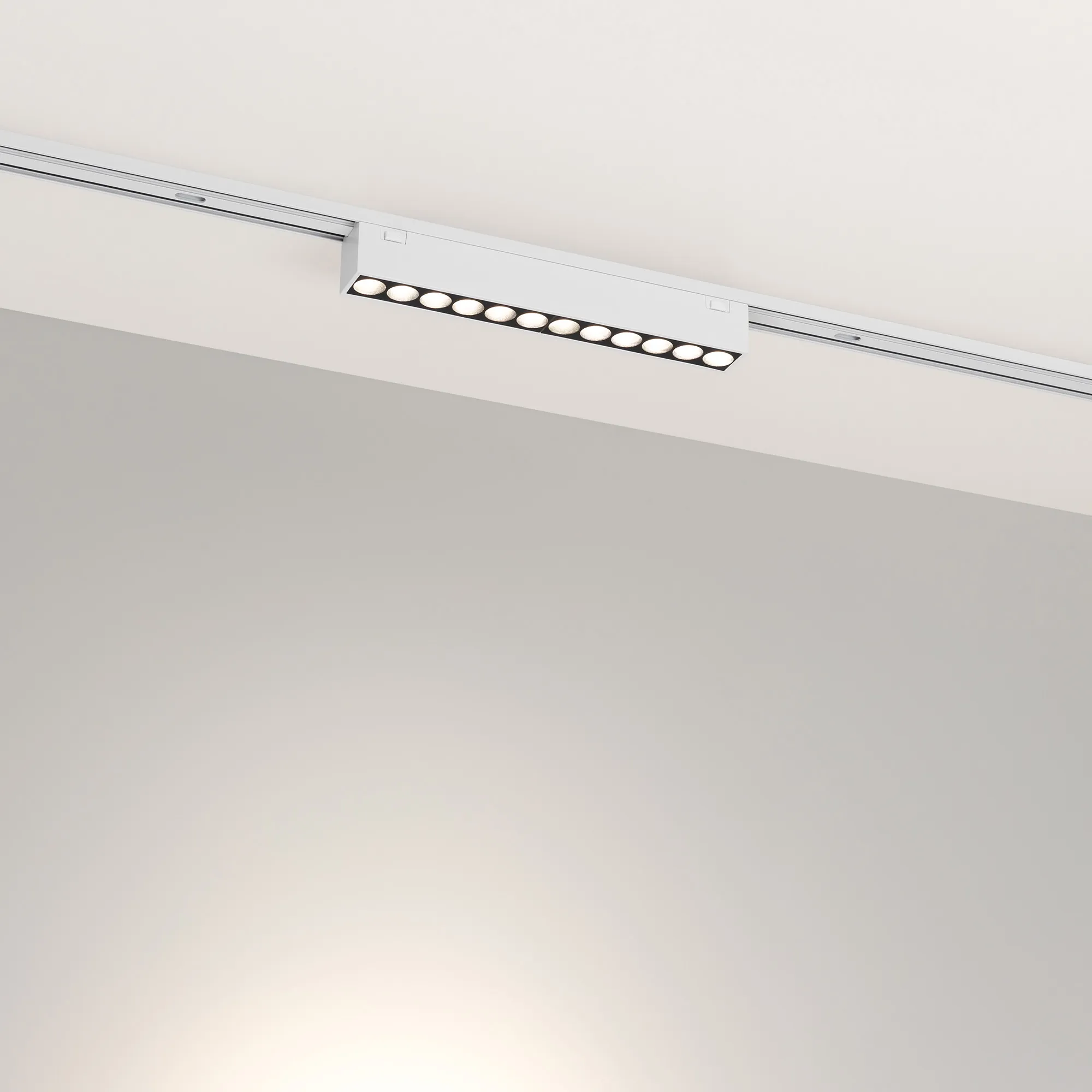 Светильник для магнитных треков MAG-VIBE. Мощность 12 Вт, св. поток 910 лм, 76 лм/Вт, дневной 4000 K, CRI>90, угол 24°, напряжение питания 48 В. Белый прямоугольный корпус из алюминия, экран поликарбонат, степень защиты IP20. Размер: длина 197 мм, ширина 25 мм, высота 29 мм. Монтаж на трек MAG-VIBE. Пульсация <1%.
