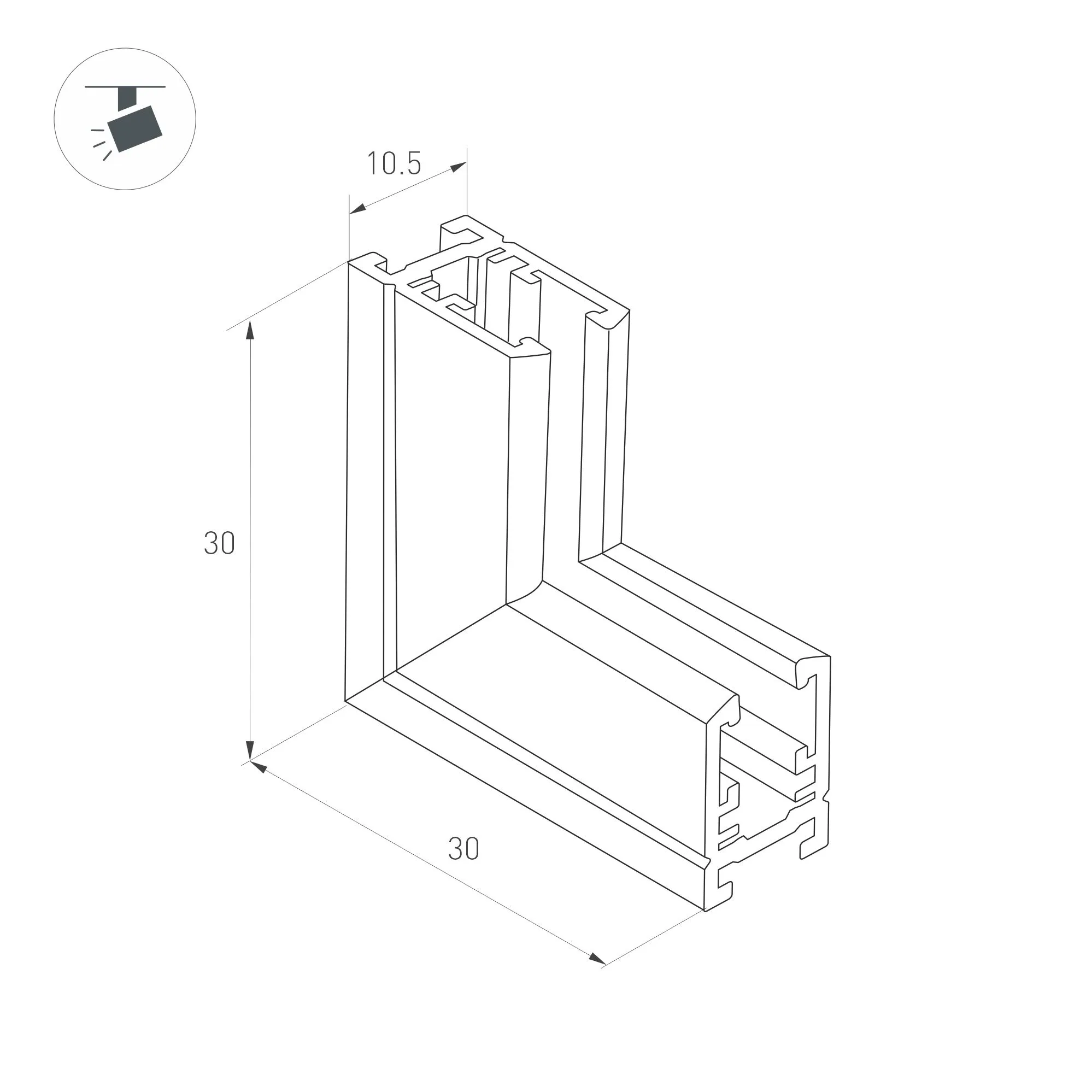 Угловой коннектор для накладного трека MAG-MICROCOSM. DC24V. Материал алюминий. Цвет черный. Размеры 30x30x15мм. Аксессуары для соединения с треком приобретаются отдельно.