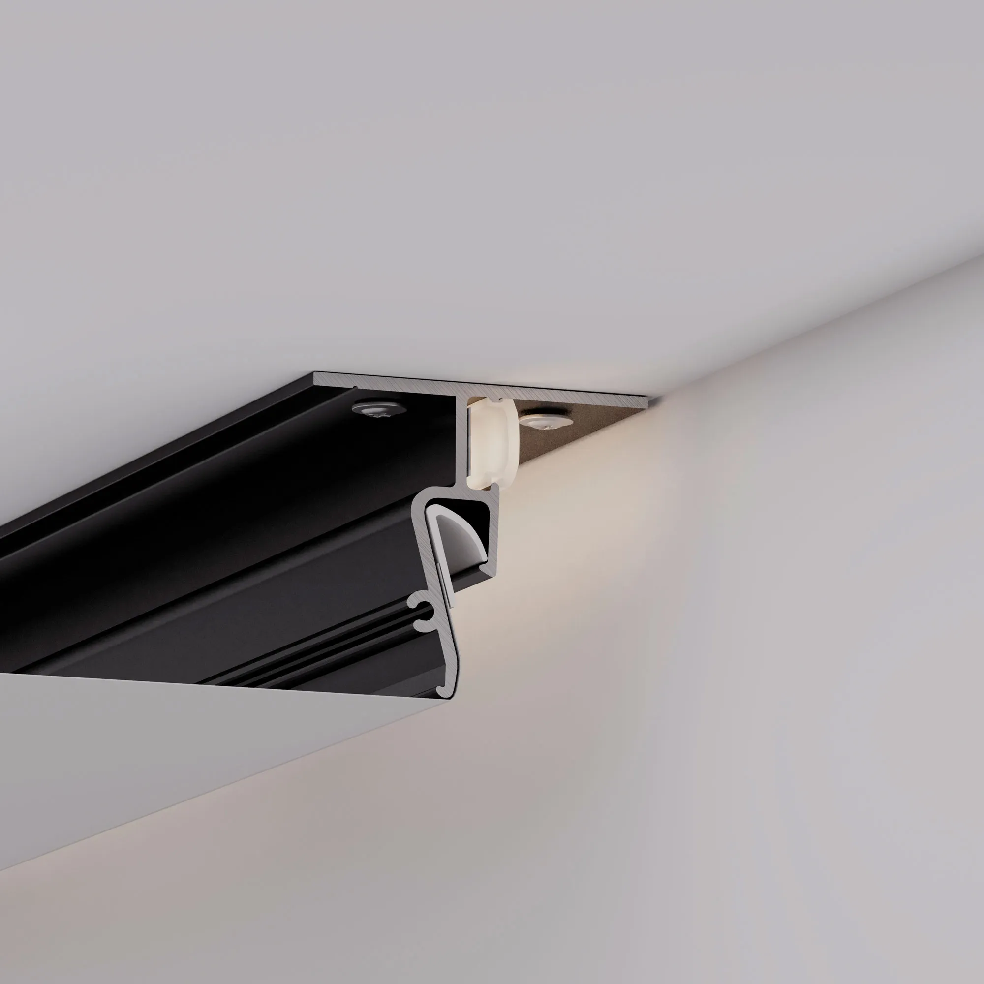 Алюминиевый профиль для монтажа и контурной подсветки натяжного потолка. Крепится к потолку. Цвет - черный RAL9005 (порошковая окраска), покрытие - зернистое. Ширина засвечиваемого контура – 22мм. Гарпунная система монтажа. Габаритные размеры (L×W×H): 2000x40,8x36 мм. Ширина площадки для ленты 10мм. Экран поставляется отдельно. Цена за 1 метр.