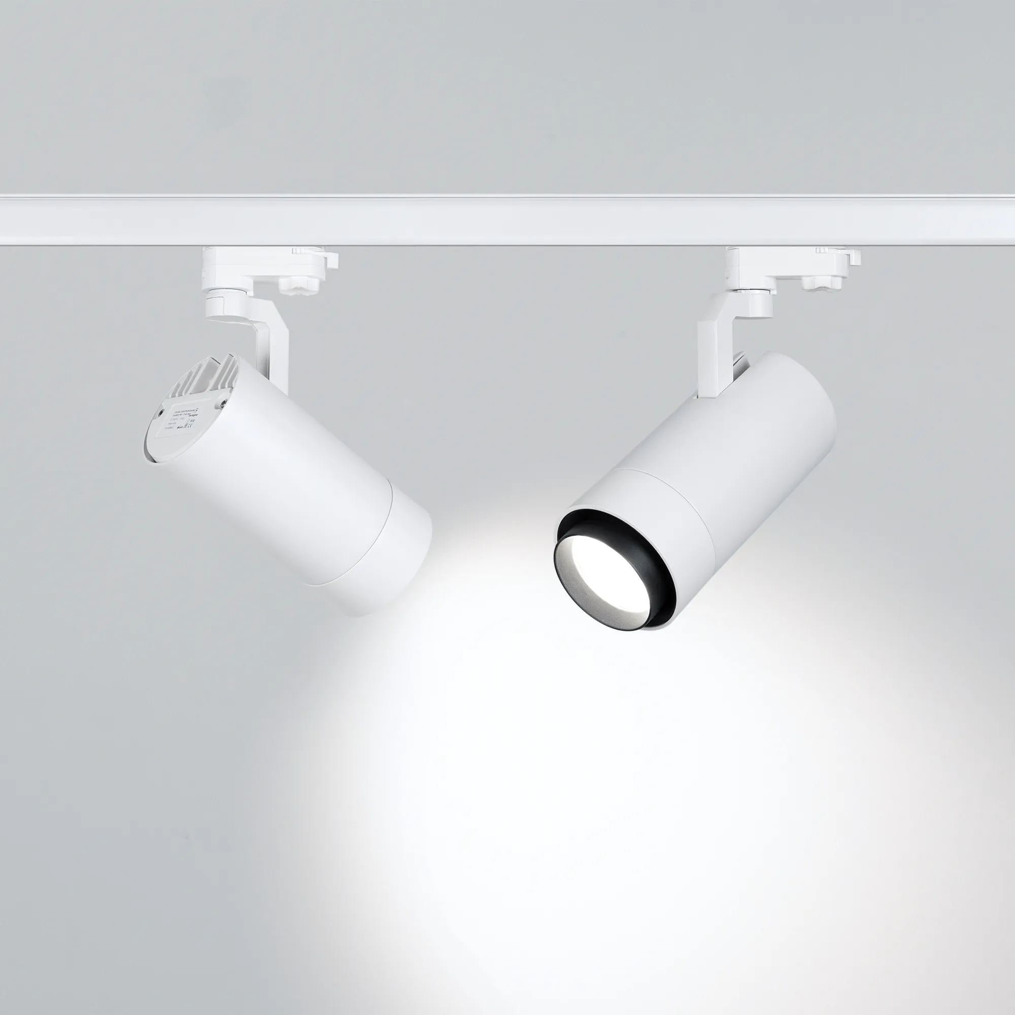 Поставка под заказ от 100 шт. Светильник подвесной для треков/шин 4 провода, 40Вт. Цвет свечения БЕЛЫЙ ХОЛОДНЫЙ 6000K, световой поток 3600лм, регулируемый угол 20-60°, CRI>90. Корпус круглый, металл, цвет белый, IP20. Размеры DxL Ø95x191мм. Входное напряжение AC220-240V, мощность 40Вт. Драйвер встроенный (30-42V, 1000mA).