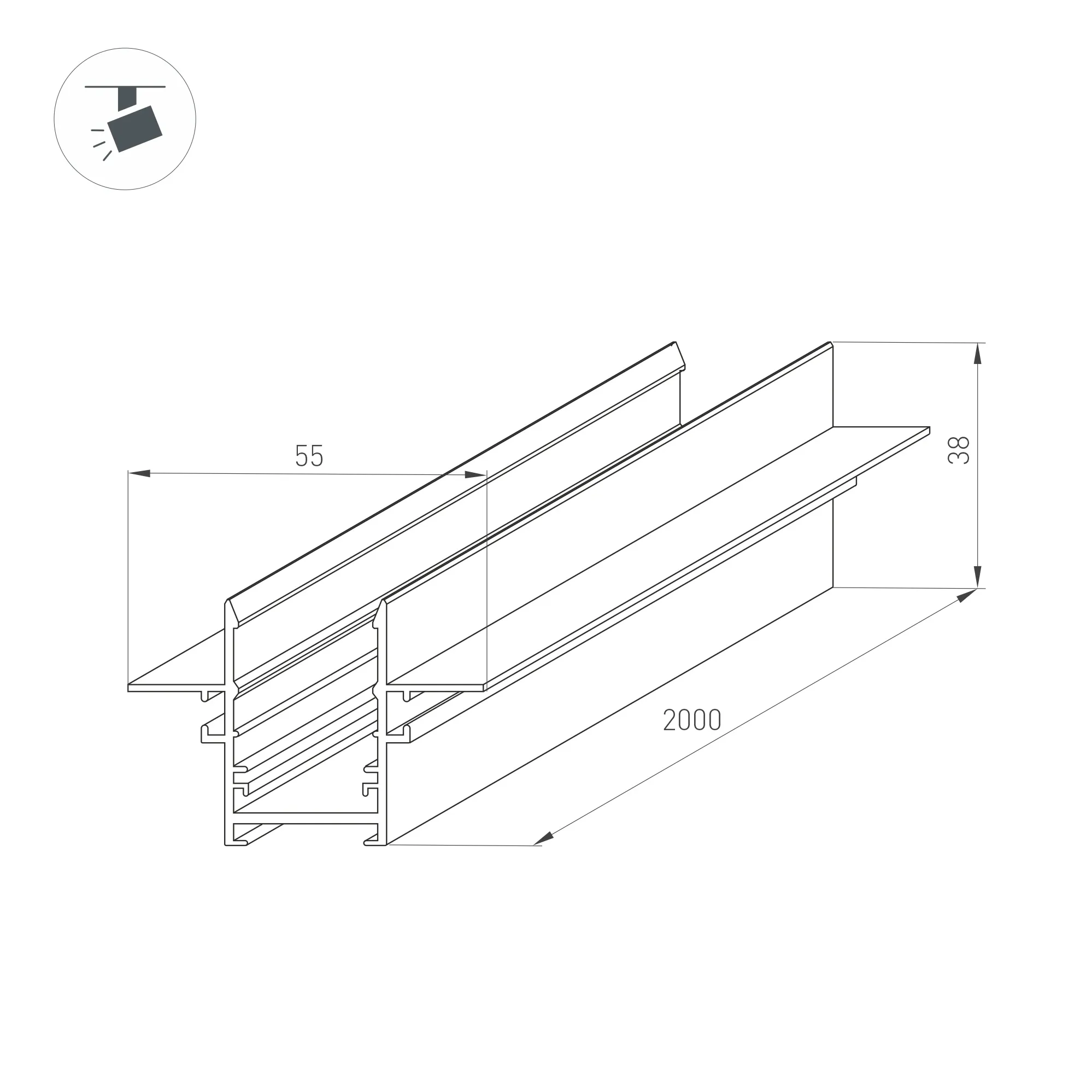 Трек встраиваемый MAG-TRACK-2538-FDW-2000 (BK, 5LN) (Arlight, IP20 Металл, 3 года)