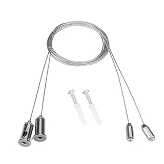 Комплект для подвеса аварийных панелей EMG-VECTOR. В комплекте: трос 1.5м - 2шт, винт с площадкой 9мм - 2шт., дюбель с шурупом - 2 шт. Крепится непосредственно к отверстиям в панели.