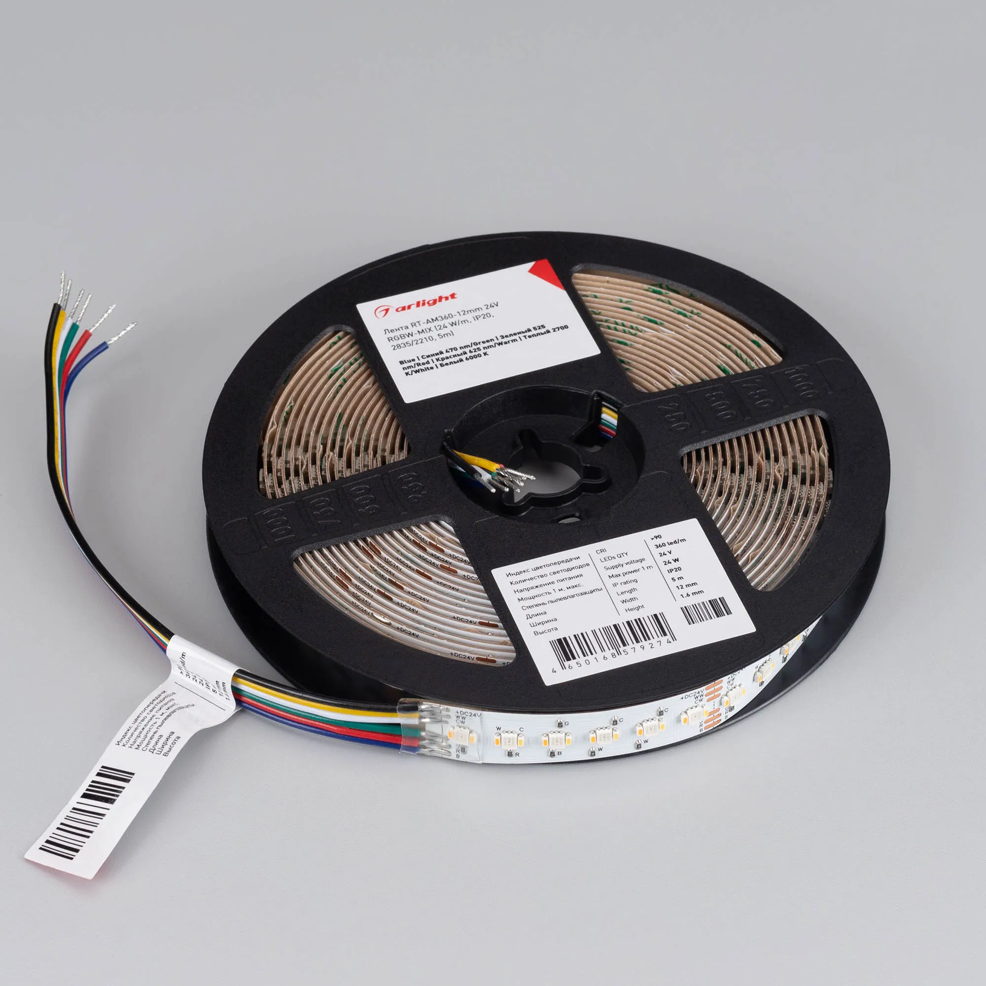 Светодиодная лента RT серии AM360. Светодиоды 2835 + 2210, 360 шт/м (1800 шт на 5 м), белая плата шириной 12 мм, скотч 3M. Цвет RGB+MIX БЕЛЫЙ 6000K + ТЕПЛЫЙ 2700K, индекс цветопередачи CRI>90, угол 120°. Питание 24 В, мощность 24 Вт/м (120 Вт на 5 м). Размеры 5000x12x1.6 мм. Мин. отрезок 50 мм, 18 светодиодов. Цена за 1 м. Обязательна установка на профиль.