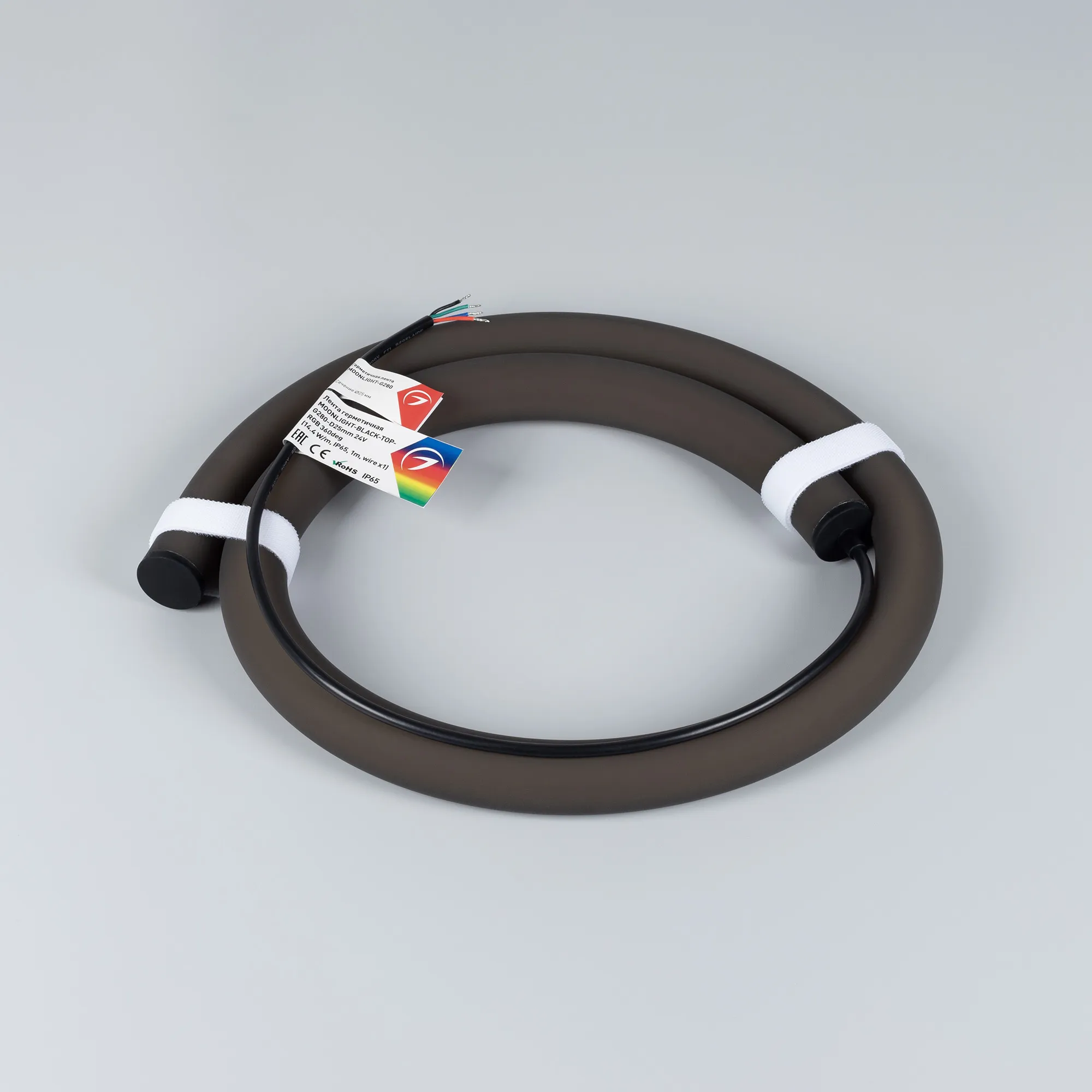 В магазине Мельковский Свет Вы можете купить "Лента светодиодная герметичная MOONLIGHT-BLACK-TOP-G280-D25mm 24V RGB 360deg (14.4 W/m, IP65, 1m, wire x1) (Arlight, Вывод прямой, 3 года)"