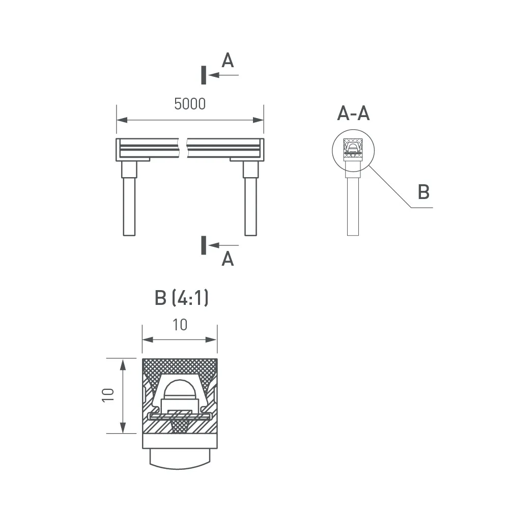 Грейзер THOR-TOP-B70-10x10mm 24V Warm2700 (15 W/m, IP67, 5m, wire x2) (Arlight, Вывод вниз, 3 года)