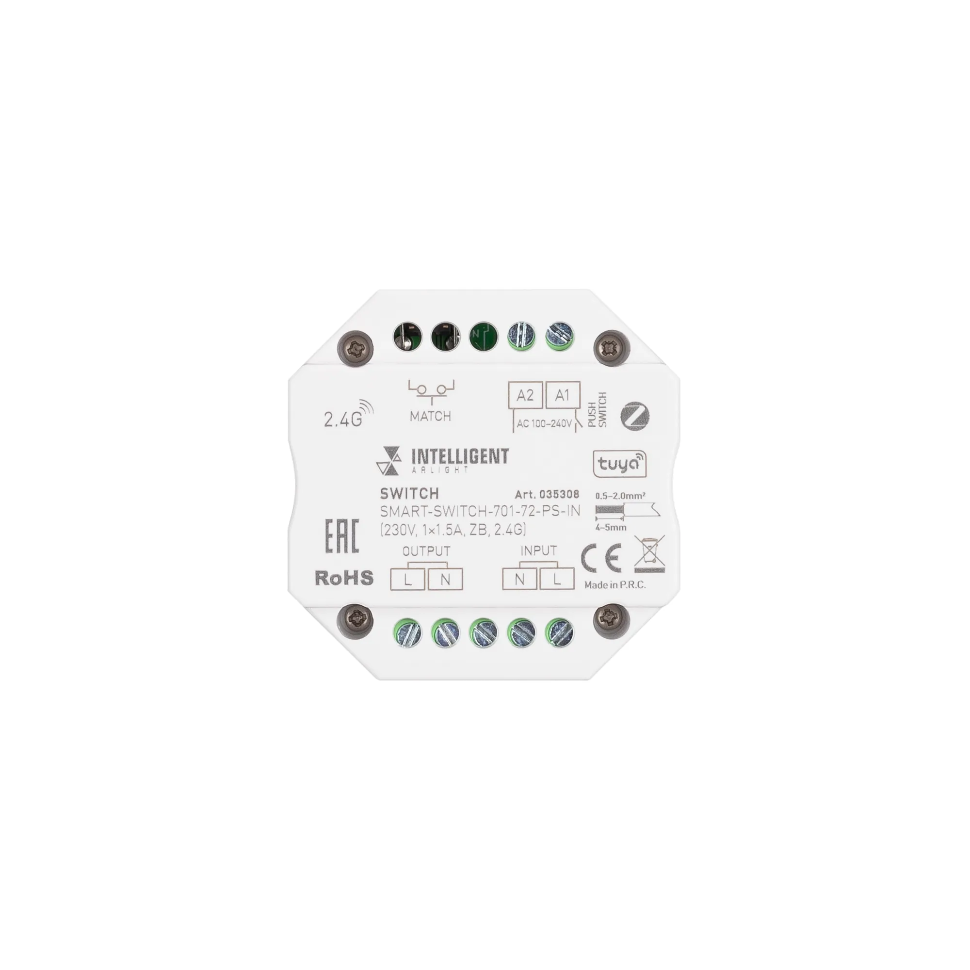 INTELLIGENT ARLIGHT Релейный модуль SMART-SWITCH-701-72-PS-IN (230V, 1x1.5A, ZB, 2.4G) (IARL, Пластик)