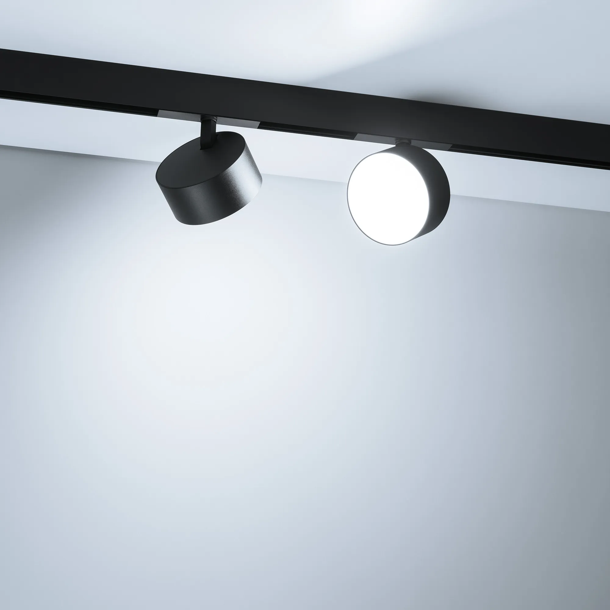 Светильник для магнитных треков MAG-ORIENT шириной 26 мм с управлением TUYA Zigbee и изменяемой цветовой температурой. Мощность 15 Вт, св. поток 1275 лм, 85 лм/Вт, изменяемая цветовая температура 2700-6500 K, CRI>90, угол 110°, напряжение питания 48 В. Черный круглый корпус из металла, степень защиты IP20. Размер светоизлучающего модуля: 120x56 мм. Монтаж на трек MAG-ORIENT. Пульсация <1%. Работает с голосовыми помощниками (Алиса, Маруся и т.д.)
