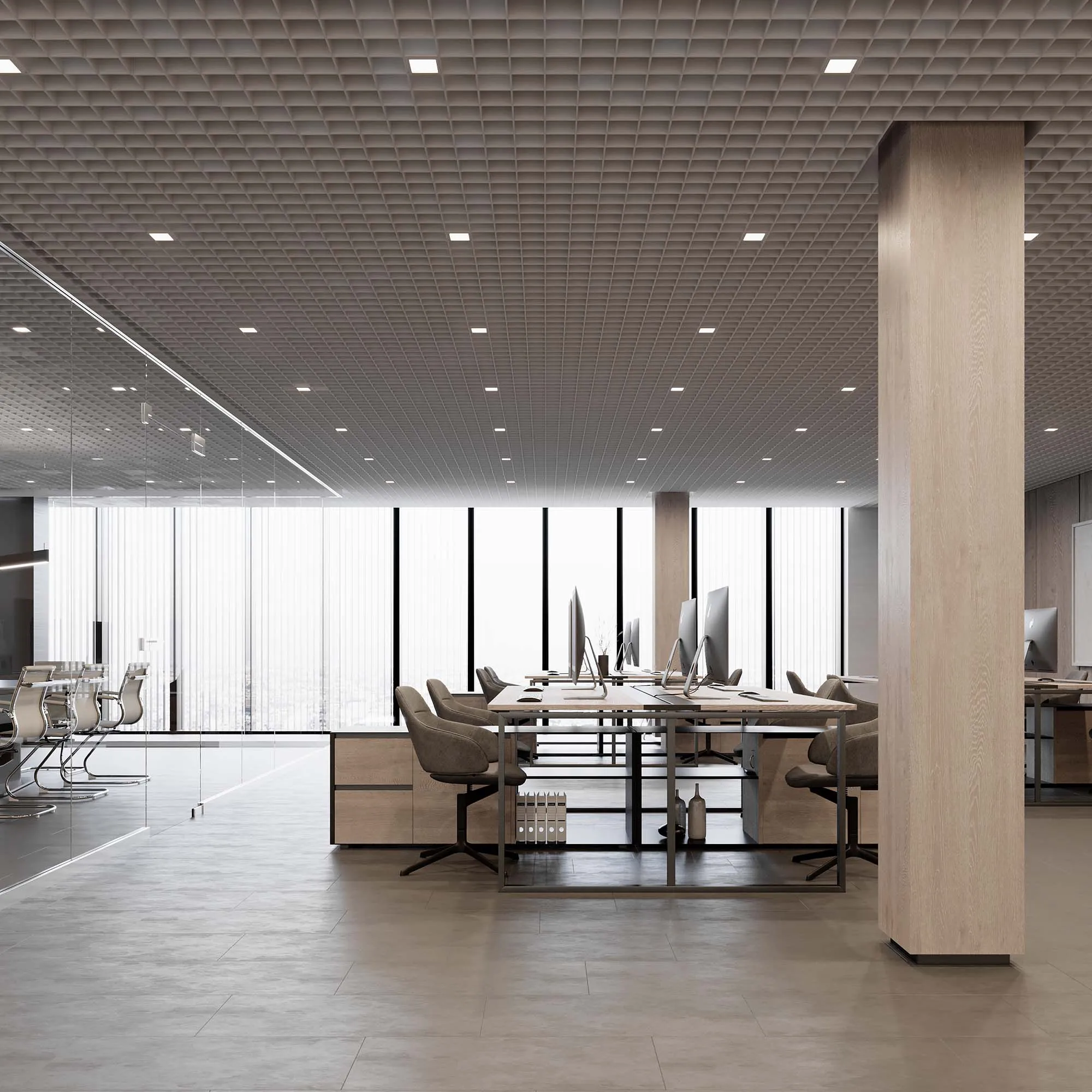 Встраиваемый светильник даунлайт для установки в потолки Грильято с размером ячейки 100х100 мм и высотой направляющих 30, 40 или 50 мм. Мощность 6 Вт, св. поток 685 лм, 109 лм/Вт, тёплый 3000 K, CRI>90, угол 90°, напряжение питания 230 В. Белый квадратный корпус из алюминия, степень защиты IP40. Размер: длина 90 мм, ширина 90 мм, высота 40 мм. Монтаж встраиваемый, установочное отверстие: длина 90 мм, ширина 90 мм. Драйвер 30-40 В, 150 мА, пульсация <2%.