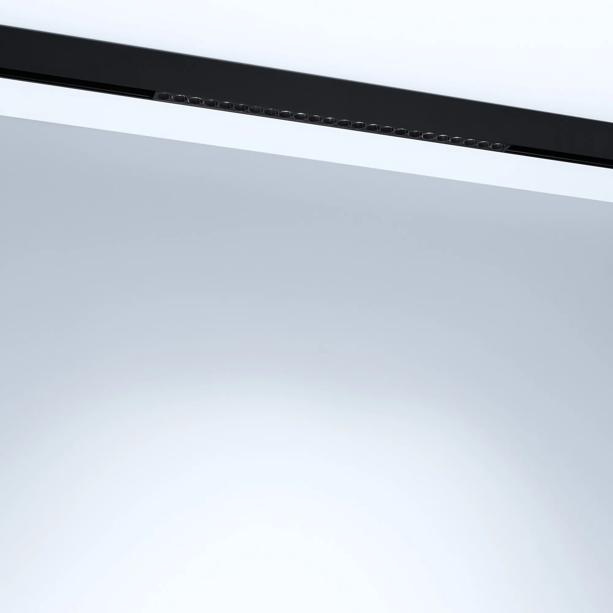 Светильник для магнитных треков MAG-ORIENT шириной 26 мм с управлением TUYA (Wi-Fi) и изменяемой цветовой температурой. Мощность 16 Вт, св. поток 930-1200 лм, 58-75 лм/Вт, изменяемая цветовая температура 2700-6500 K, CRI>90, угол 24°, напряжение питания 48 В. Черный прямоугольный корпус из металл, экран поликарбонат, степень защиты IP20. Размер: длина 462 мм, ширина 22 мм, высота 42 мм. Монтаж на трек MAG-ORIENT. Пульсация <1%. Работает с голосовыми помощниками (Алиса, Маруся и т.д.)