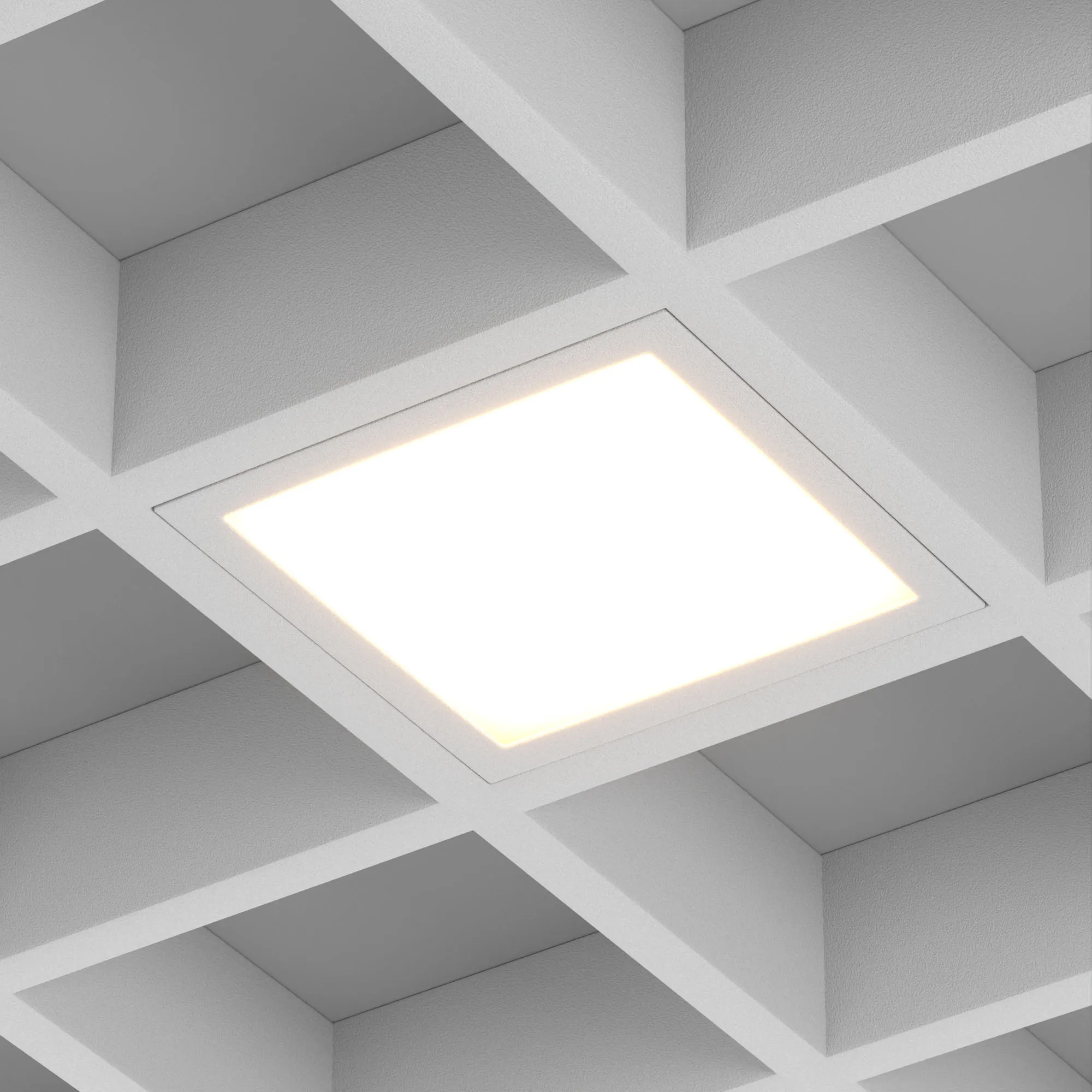 Встраиваемый светильник даунлайт для установки в потолки Грильято с размером ячейки 200х200 мм и высотой направляющих 30, 40 или 50 мм. Мощность 24 Вт, св. поток 2439 лм, 105 лм/Вт, дневной 4000 K, CRI>90, угол 100°, напряжение питания 230 В. Белый квадратный корпус из алюминия, степень защиты IP40. Размер: длина 190 мм, ширина 190 мм, высота 40 мм. Монтаж встраиваемый, установочное отверстие: длина 190 мм, ширина 190 мм. Драйвер 24-40 В, 600 мА, пульсация <1%.