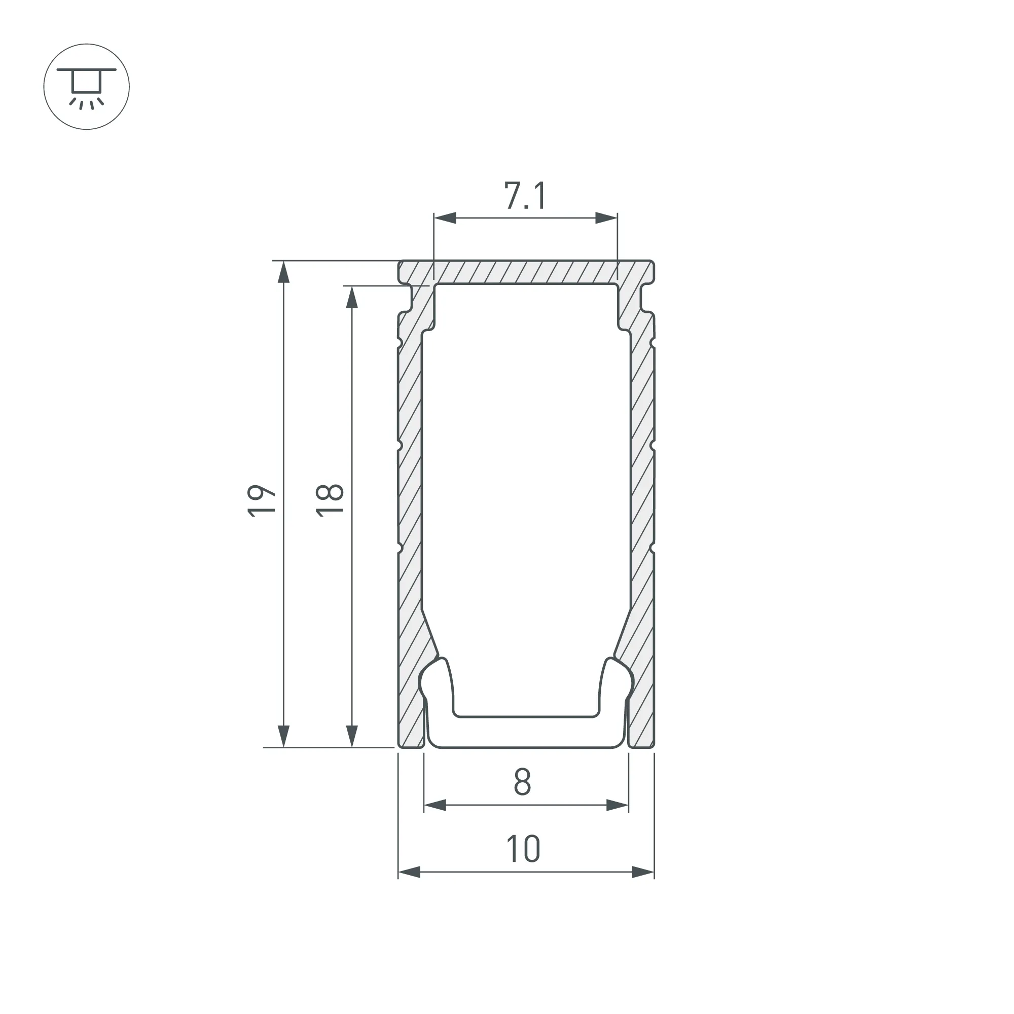Алюминиевый анодированный профиль для светодиодных лент и линеек. Габаритные размеры (L×W×H): 2000x10x19 мм. Ширина площадки для ленты 7,1 мм. Экраны, заглушки и другие аксессуары приобретаются отдельно. Цена за 1 метр.