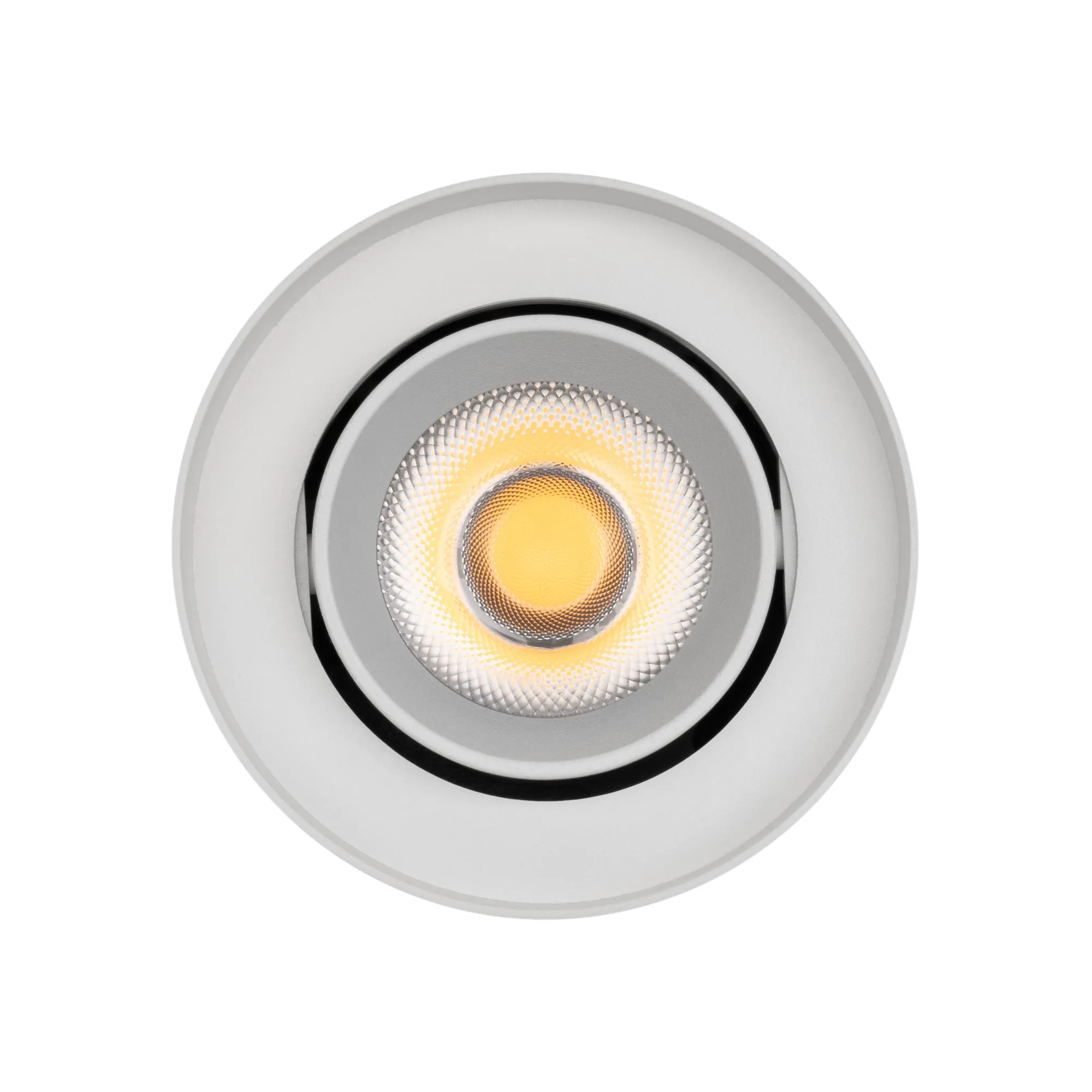 Накладной интерьерный светильник. Мощность 10 Вт, св. поток 970 лм, 93 лм/Вт, теплый 3000 K, CRI>90, угол 36°, регулируемое направление луча 40° (20+20), поворотный световой модуль вокруг своей оси на 340°, UGR <18, напряжение питания 230 В. Белый круглый корпус из алюминия, степень защиты IP54. Размер: диаметр 86,5 мм, высота 120 мм. Монтаж накладной. Драйвер 27-43 В, 250 мА, пульсация <1%.