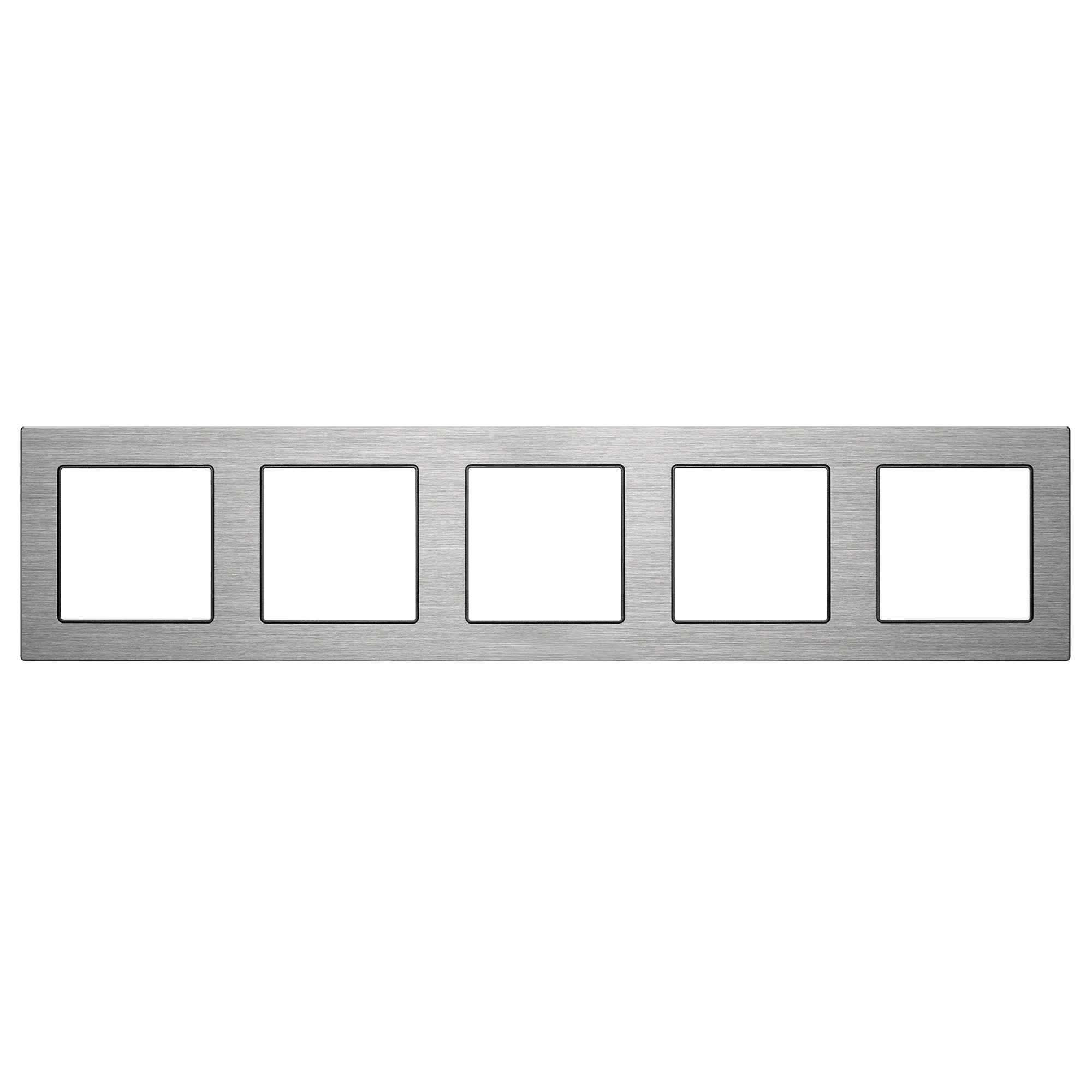 Рамка алюминиевая на 5 пост, под встраиваемый механизм (квадрат). Цвет - серый. Ориентации монтажа - горизонтальная/вертикальная.