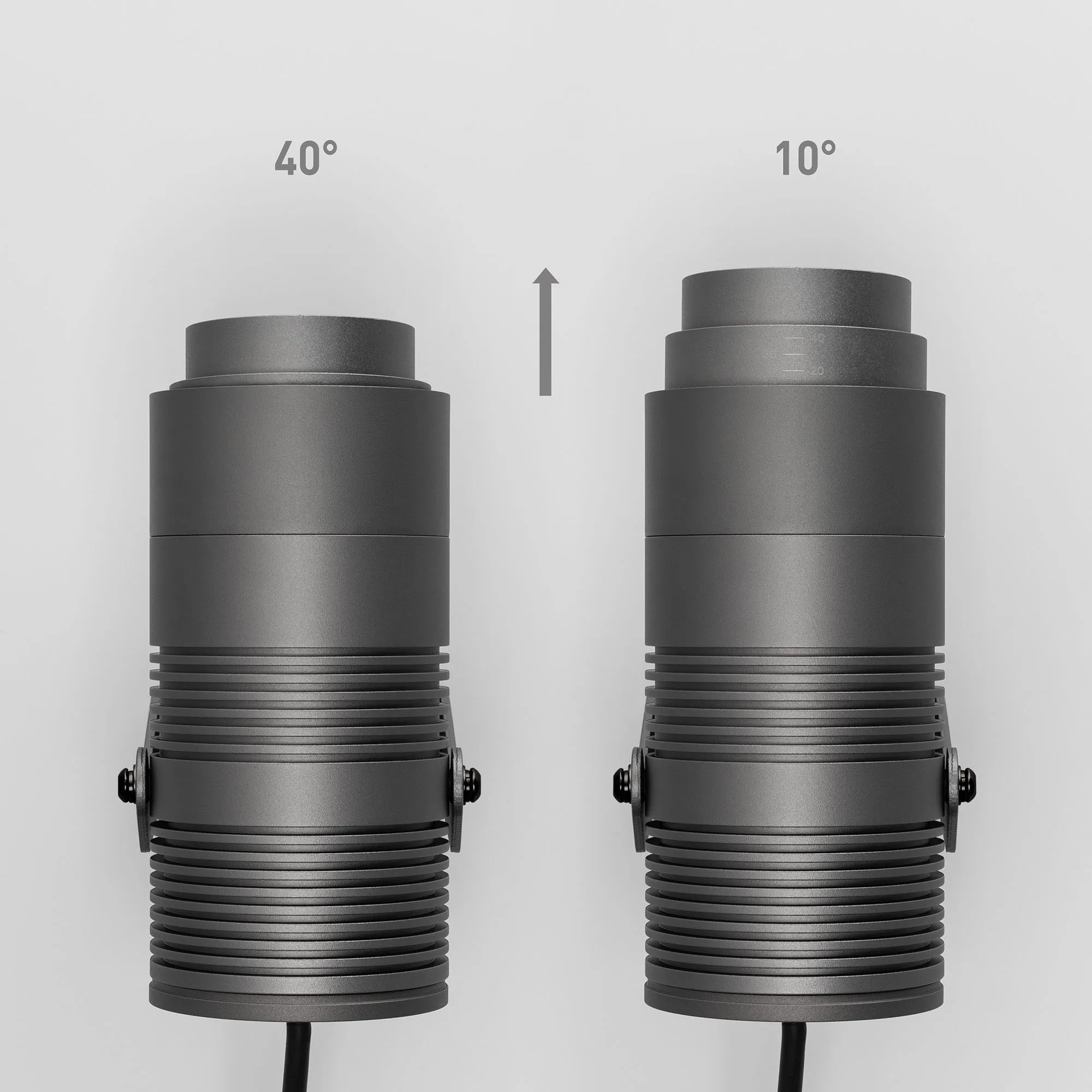 Уличный светодиодный прожектор, мощность 25Вт, регулируемый угол освещения 10-40°. Цвет ТЕПЛЫЙ 3000К, световой поток для угла 10° 750 для угла 40° 1300лм. Влагозащищенный корпус IP67 - темно-серый алюминий, экран из закаленного стекла. Угол поворота корпуса в вертикальной плоскости 135°. Питание 230В, мощность 25 Вт. Размеры DxH - Ø89x212мм. В комплекте 1м провод.