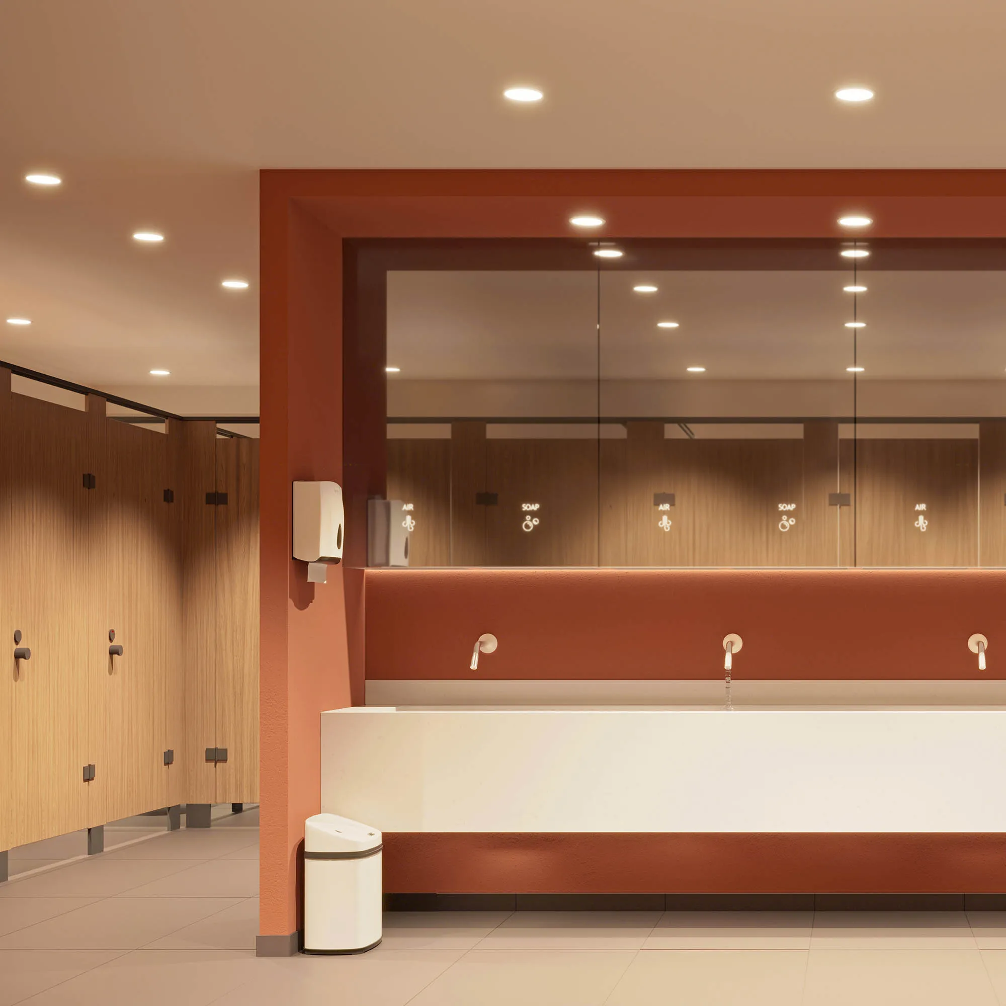 Встраиваемый светильник даунлайт с изменяемой мощностью и цветовой температурой. Мощность 9-12 Вт, св. поток 950-1310лм, 100 лм/Вт, цветовая температура 3000-4000-5700 K, CRI>90, угол 60°, напряжение питания 230 В. Белый круглый корпус, степень защиты IP54. Размер: диаметр 140 мм, высота 80 мм. Монтаж встраиваемый, установочное отверстие: диаметр 122-127 мм. TRIAC-драйвер, пульсация <1%.