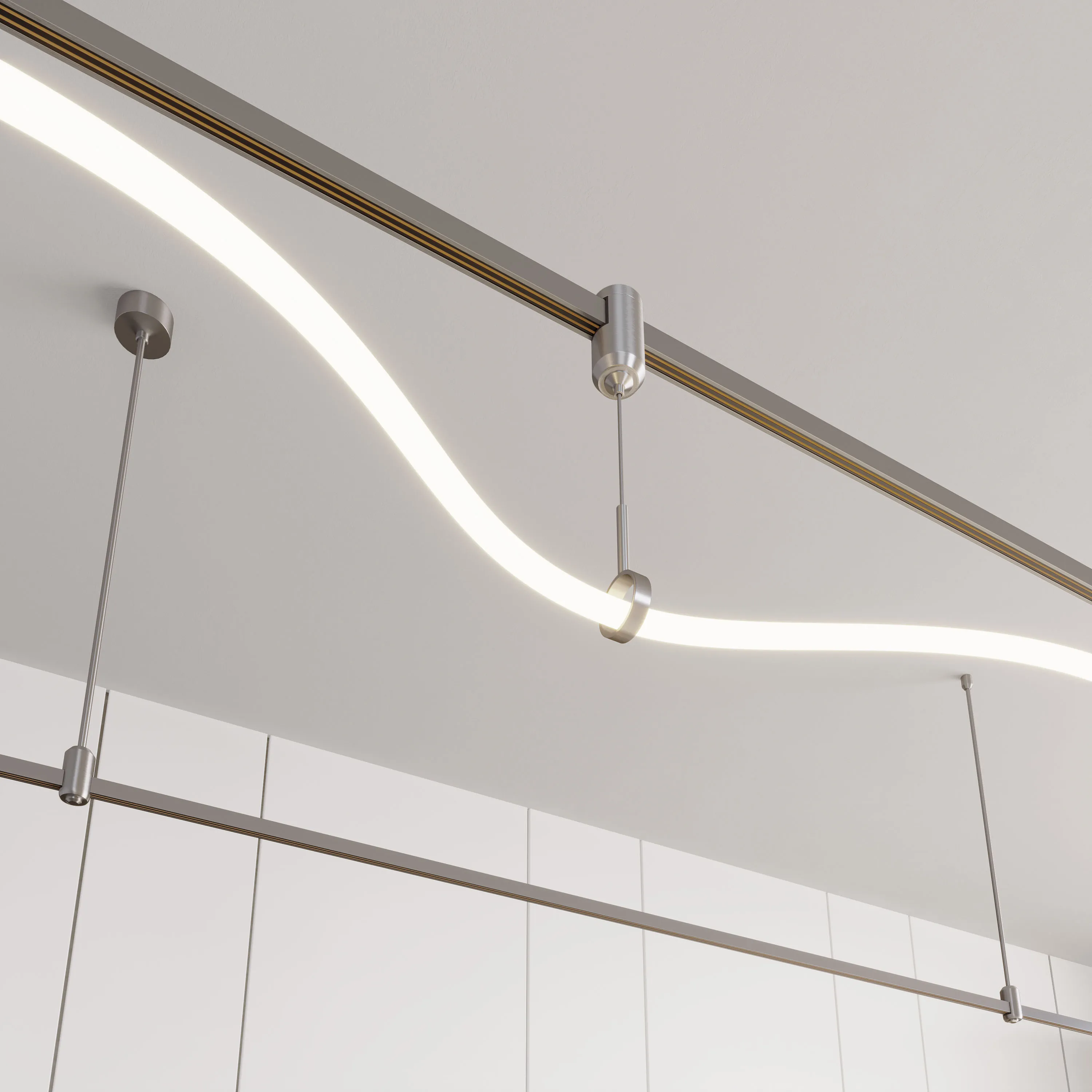 Подвес с тросом для потолочного крепления треков системы APRIORI. Не проводит электричество. Размер Ø20 х 1500 х Ø45 мм. Размер потолочного крепления: Ø20 х 35 мм, размер подвесного кольца: Ø45 х 12 мм. Материал алюминий, цвет титан.