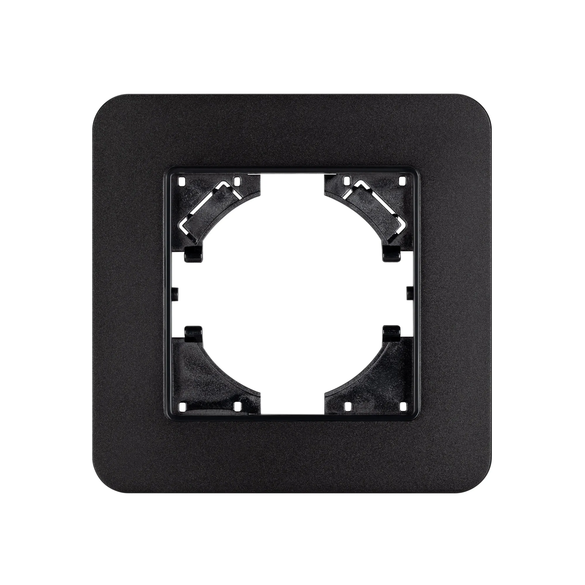 Рамка алюминиевая на 1 пост, под встраиваемый механизм. Цвет - черный с Soft-Touch покрытием. Уровень герметичности IP20. Ориентация монтажа - горизонтальная (основным ориентиром служат посадочные выступы для накладки механизма).