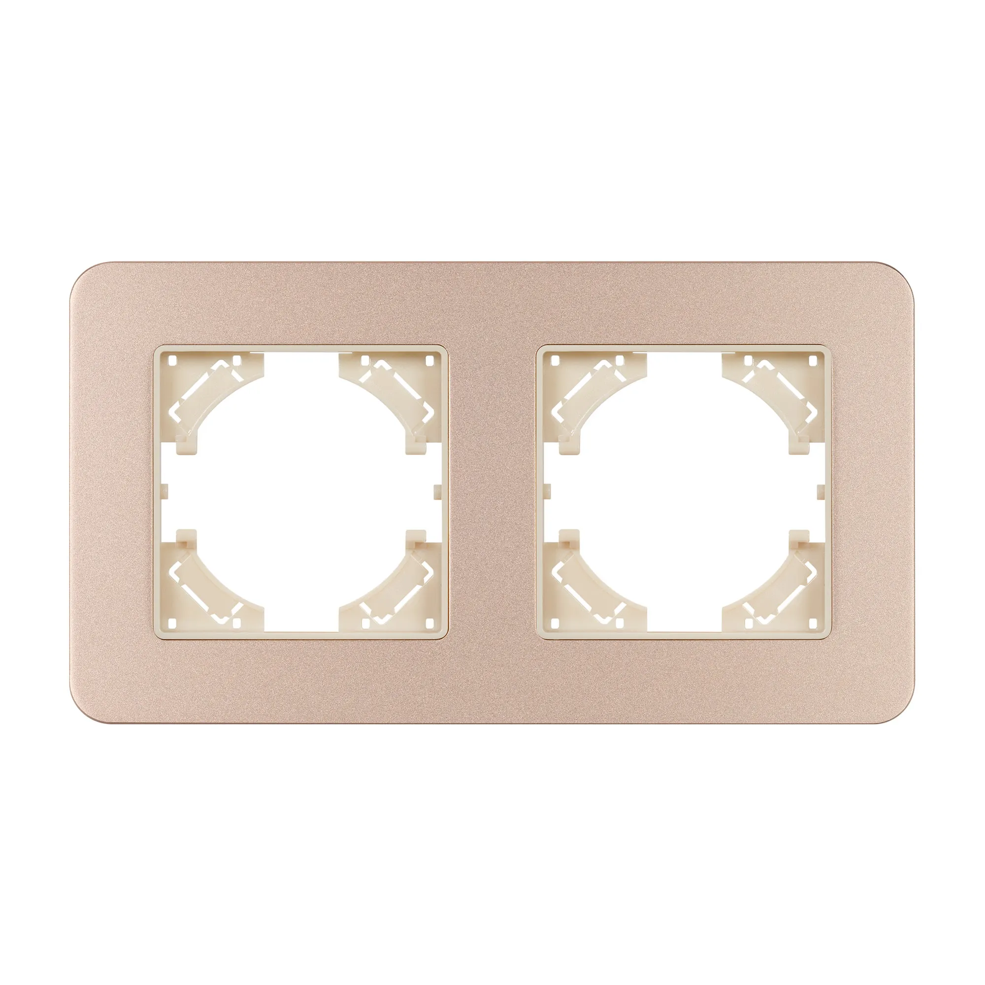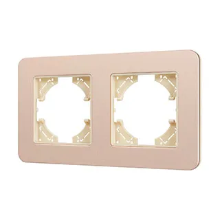 Рамка алюминиевая на 2 поста, под встраиваемый механизм. Цвет - золотой с Soft-Touch покрытием. Уровень герметичности IP20. Ориентация монтажа - горизонтальная (основным ориентиром служат посадочные выступы для накладки механизма).