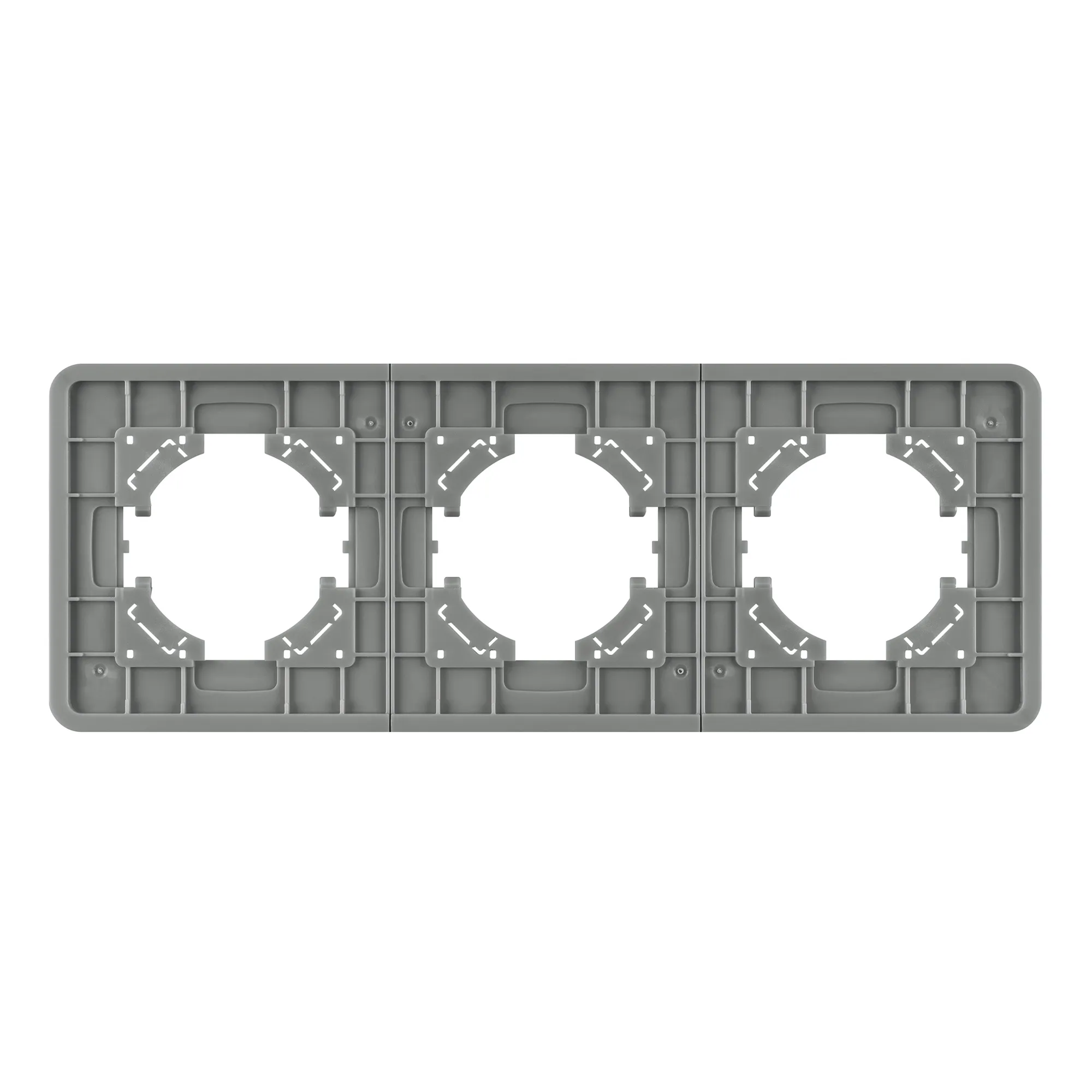 Рамка стеклянная на 3 поста, под встраиваемый механизм. Цвет - серый. Уровень герметичности IP20. Ориентация монтажа - горизонтальная (основным ориентиром служат посадочные выступы для накладки механизма).