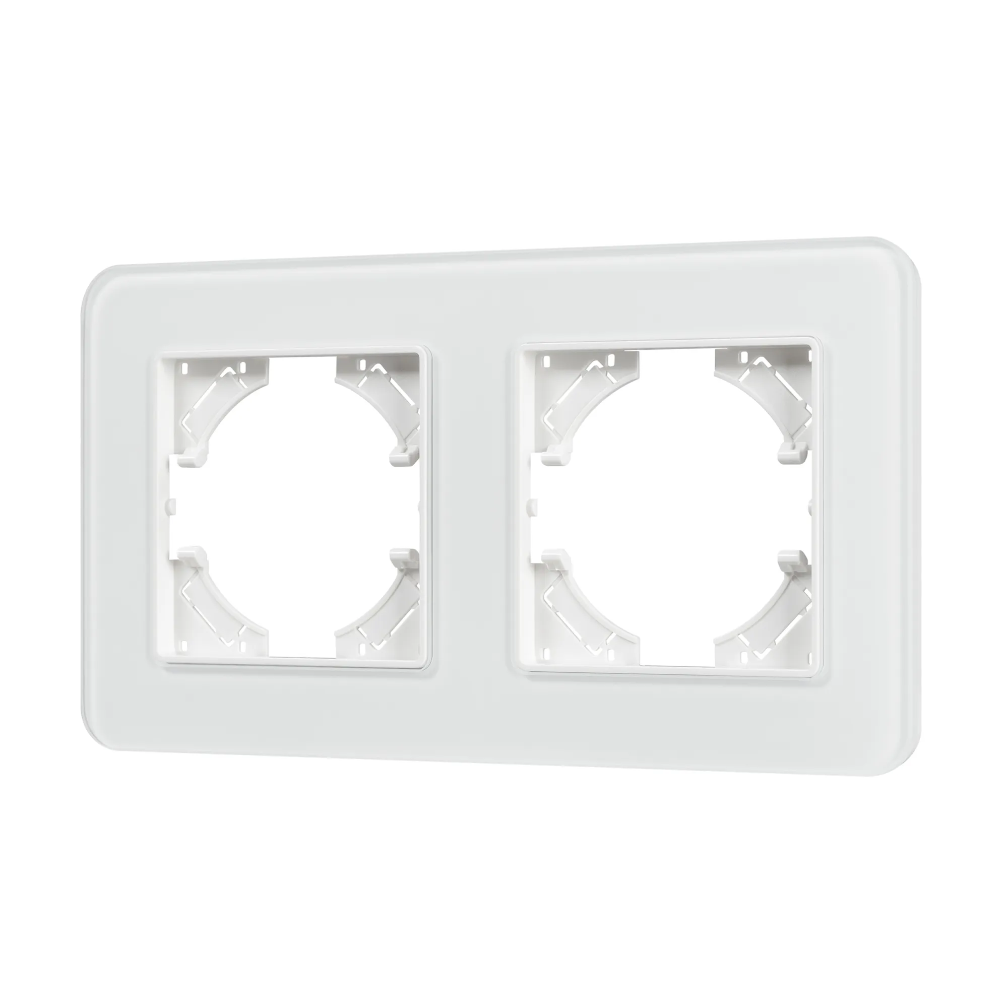 Рамка стеклянная на 2 поста, под встраиваемый механизм. Цвет - белый. Уровень герметичности IP20. Ориентация монтажа - горизонтальная (основным ориентиром служат посадочные выступы для накладки механизма).