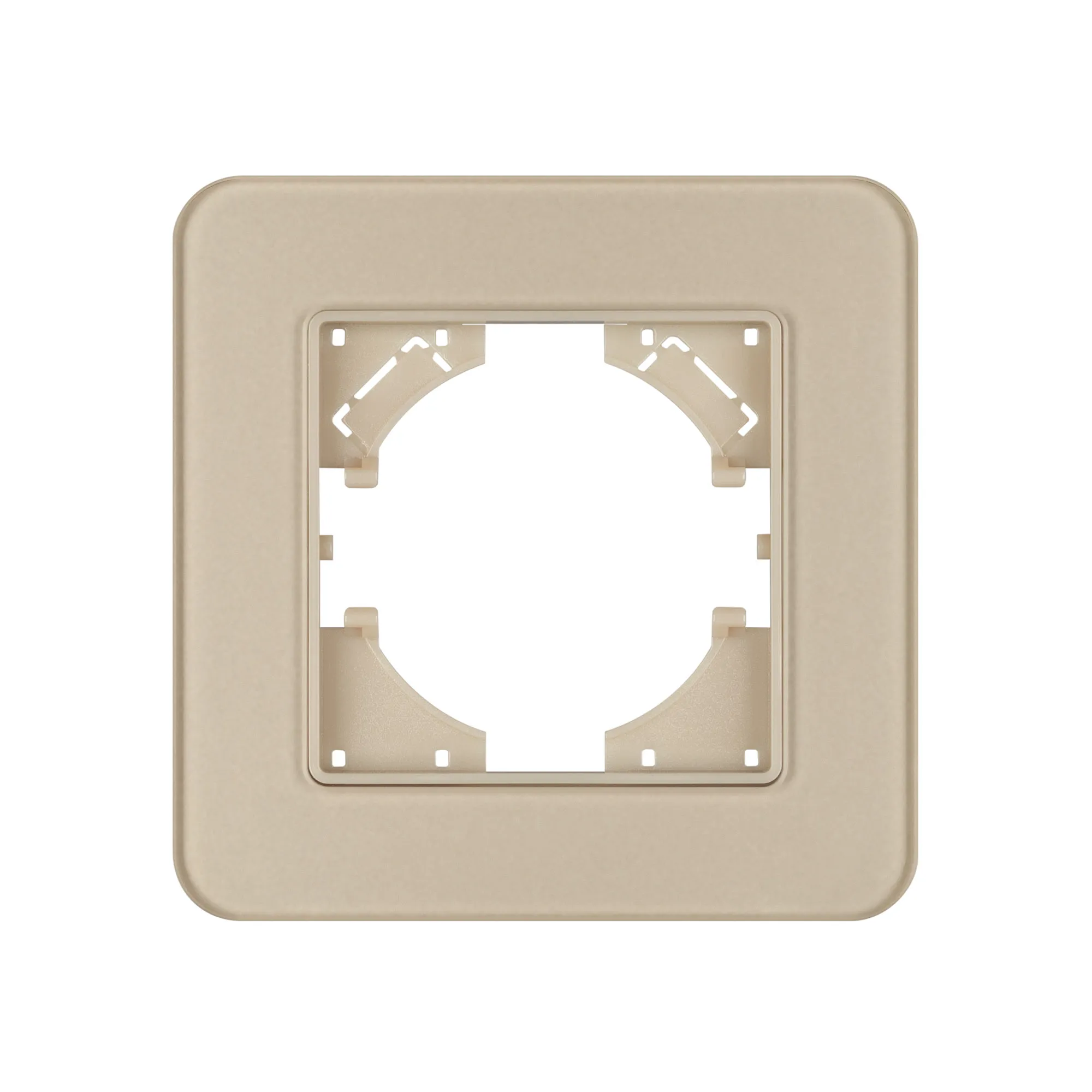 Рамка стеклянная на 1 пост, под встраиваемый механизм. Цвет - золотой с Soft-Touch покрытием. Уровень герметичности IP20. Ориентация монтажа - горизонтальная (основным ориентиром служат посадочные выступы для накладки механизма). Ориентация монтажа горизонтальная и вертикальная.