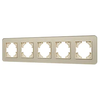 Рамка стеклянная на 5 постов, под встраиваемый механизм. Цвет - золотой. Уровень герметичности IP20. Ориентация монтажа - горизонтальная (основным ориентиром служат посадочные выступы для накладки механизма).