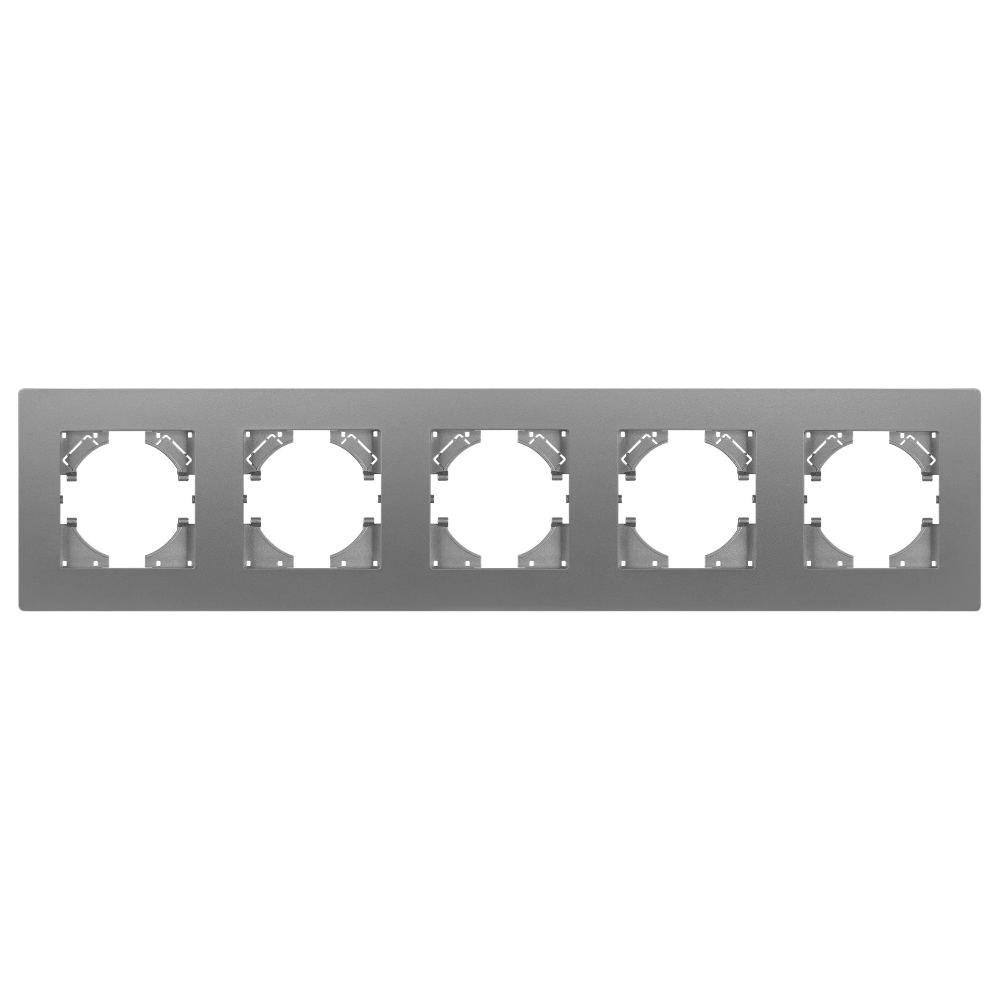 Рамка пластиковая на 5 постов, под встраиваемый механизм. Цвет - серый. Уровень герметичности IP20. Ориентация монтажа - горизонтальная (основным ориентиром служат посадочные выступы для накладки механизма).