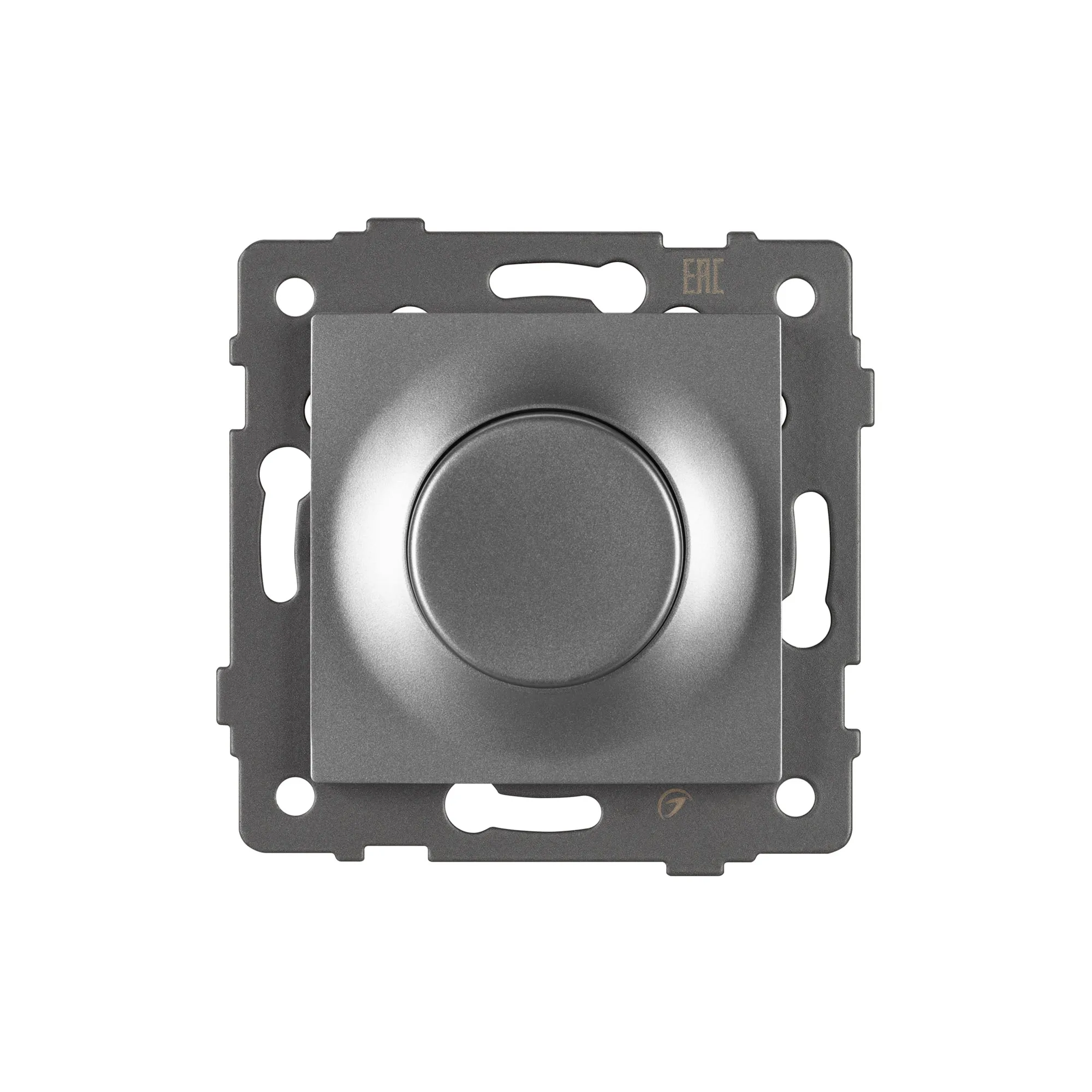 Механизм регулировки света на 1 пост. Цвет - серый. Без фронтальной рамки. Уровень пылевлагозащиты IP20. Механизм устанавливается в стандартный круглый подрозетник. Максимальная нагрузка 500 Вт только для ламп накаливания и галогенных, 150 Вт только для энергосберегающих и светодиодных ламп. Габаритные размеры: длина 71 мм, ширина 71 мм, высота 52 мм. Гарантийный срок 10 лет.
